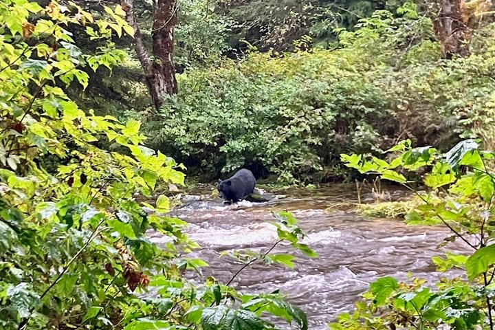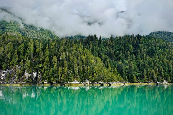 A peaceful anchorage near the head of Aaltanhash Inlet allowed guests of National Geographic Venture to awaken to a smack of moon jellies (Aurelia aurita) roaming the fjord. After an early morning scan of the shoreline and surrounding water, several humpback whales (Megaptera novaeangliae) were spotted gently feeding around the ship. After breakfast, guests departed in Zodiacs to observe the whales and explore the surrounding area. After an eventful morning, guests returned to the ship for lunch before turning their attention to the terrestrial ecosystems. Naturalists guided excursions throughout the salt marsh and intertidal regions with a small group attempting to penetrate the thick undergrowth in search of an inland lake. Fresh signs of recent bear activity were found throughout the area: bedding locations, fish remains, and a rare glimpse at a perennial bear trail. After returning to the ship, National Geographic Venture departed for a cruise along the shore of Princess Royal Island and a brief search for bears before dropping anchor south of Hartley Bay for the evening.
