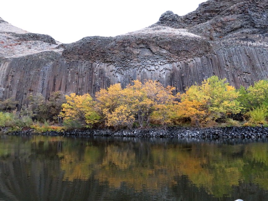 The answer is not too long in coming. There is an abrupt, sharp berm just behind the broad, low beach. Even with a well-established cover of grass and shrubs this is obviously not an accidental structure. A beautiful waterfall plunges from the cliffs on our left, there is ample evidence that its water was once impounded, although it has now breeched the berm exposing an underlying structure of stout, rough-cut poles. We are in fact facing a massive beaver dam!