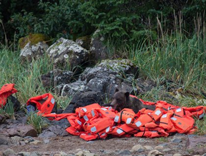 On approach to Akpatok Island, the call came from the bridge where keen eyes had sighted the morning’s first polar bears. As the ship circumnavigated the island deep inside Ungava Bay, we were surrounded by thousands of thick-billed murres who nest on the rocky cliffs. Akpatok Island is the largest island in Ungava Bay and is named for the “Akpat,” the thick-billed murre.