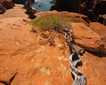 The second group with me, Elli, went to monastery, but without the intension to go up the 300 steps. We stopped to the parking area from where we could enjoy the wonderful views of the wild setting. To see a monastery “hanging” from the steep rocks was unexpected. How could they ever build such a church there? The unlimited blue of the seas and the sky together with the gray rocks and the green vegetation gave our cameras great opportunities. We heard some historical explanations about the island and the monastery, and then we continued to the Chora.