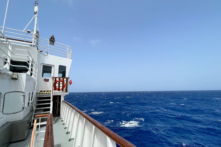 Last night, we left the port of Ushuaia to start our long and exciting journey across the Atlantic Ocean. This is our first of many days “at sea.” It takes a certain spirit to join a 35+ day transoceanic transit, a person who is prepared to spend days without seeing land. This “at sea” spirit is palpable in our group, as we all know we are on a unique expedition to remote islands and across a vast ocean. As we settled into the ship, many of us flip-flopped between adjusting to our sea legs to spending time on the bridge to exploring our home for the next month, National Geographic Explorer.