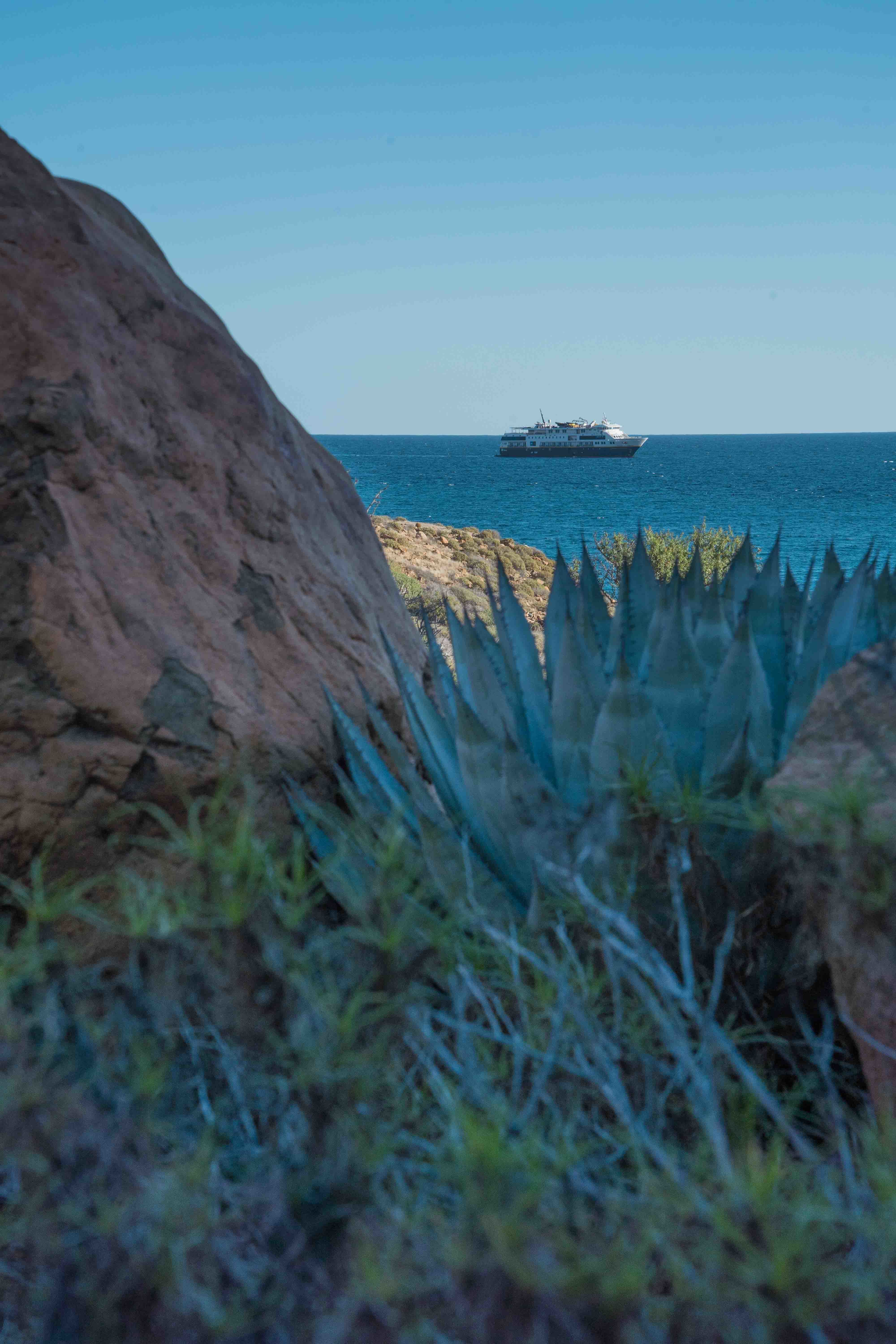 National Geographic Sea Lion ’s first Baja trip of the season is off to a great start! We began in Bahia Almejas, where we were picked up from the ship after breakfast by the local pangueros, who hold the permits required to watch whales in Magdalena Bay. Their small fiberglass boats are a great platform for viewing the stars of this itinerary, the gray whales. We zoomed out toward the mouth of Bahia Almejas in the speedy pangas, getting great sightings of hundreds of birds congregating on the sand bars. And then, a spout! And another, and another! A dozen or more whales dotted the horizon in every direction. The whales were unusually active. While full body breaches are usually a rare occurrence in this species, we saw multiple breaches from multiple animals throughout the morning. All in all, it was a beautiful introduction to these animals that we hope to know better as the trip continues. The pangueros delivered us back to National Geographic Sea Lion and we lifted our anchor to relocate to Puerto Magdalena, a small fishing village. Photo instructor Chelsea gave a presentation about smartphone photography as we completed our repositioning, and then we disembarked once more for the afternoon. Some of us opted to go for hikes, which provided beautiful looks at native and endemic plant species. Others chose a fat tire bike ride, or a leisurely afternoon at the restaurant on the beach. Those who chose the Zodiac tour had a nice surprise when they encountered a large pod of bottlenose dolphins. After a long day of play in the sun, it was time to return to the ship and have a well-deserved dinner. Following a beautiful meal, naturalist Sofia gave a talk in the lounge about gray whales. Tomorrow, we journey north for new adventures!