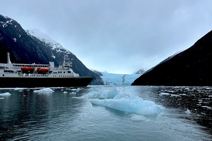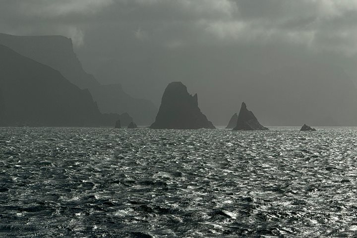A fierce rainstorm followed us to our second anchorage in Bahía Canepa. This is a sweeping fjord with massive granite walls and several notable waterfalls. In our fleet of zodiacs we followed close to the coastline and tested our raingear for leaks. Interpretation on the geology, bird life, and marine mammals were highlights of these cruises, as Staten Island’s remote nature makes it a unique ecosystem and refuge for many seabirds. Many cruisers were greeted by incredible numbers of South American sea lions investigating the Zodiacs as they passed by. All came home thoroughly drenched and smiling with a great deal of enthusiasm and kinship to these lands.