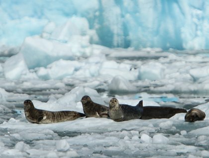 Needless to say we deserved the bountiful breakfast buffet that we helped ourselves from once we were back on board. Afterwards I gave a snorkel safety and info session in the lounge and then we fitted everyone with snorkel equipment on the sky deck. By 10:30 a.m. we were boarding the pangas (that is the local name for our Zodiacs) and heading out to snorkel from the golden beach at Bartolome. The water was chilly, but heck – some of us saw penguins! Everyone went at their own speed and according to their water skills and we all had a delightful time. There were many colorful fish of a dozen different species, a white-tipped reef shark, and a large sting ray.