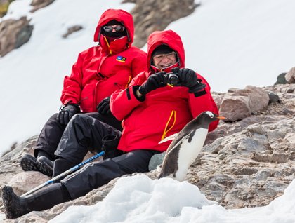 After breakfast we headed back to Bartolomé, but this time to practice snorkeling and swimming from the golden beach of the island. We couldn’t wait to get into the water and enjoy a wonderful experience with curious penguins, colorful reef fish, and playful sea lions.