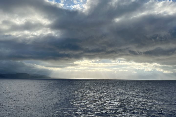 In the afternoon, we had the opportunity to board a catamaran and head over to a sandbar for some snorkeling, where we saw blacktip reef sharks and stingrays (the Jenkins’ whipray). Those who were keeping an eye out also saw a few pufferfish! Keeping the water activities going, we jumped back on the catamaran (which included live music from local musicians) and made our way over to a quiet beach to watch the sunset, snorkel, walk the beach, and eat some delicious fresh fruit. It was a lovely way to finish our day in Bora Bora before heading back to National Geographic Resolution for an amazing barbecue dinner. The Visiting Scientist Team stayed up after dinner to filter and process the water samples they collected earlier that day. They enjoyed guest visits in the Science Hub to discuss Adi’s research on plankton populations in the South Pacific.