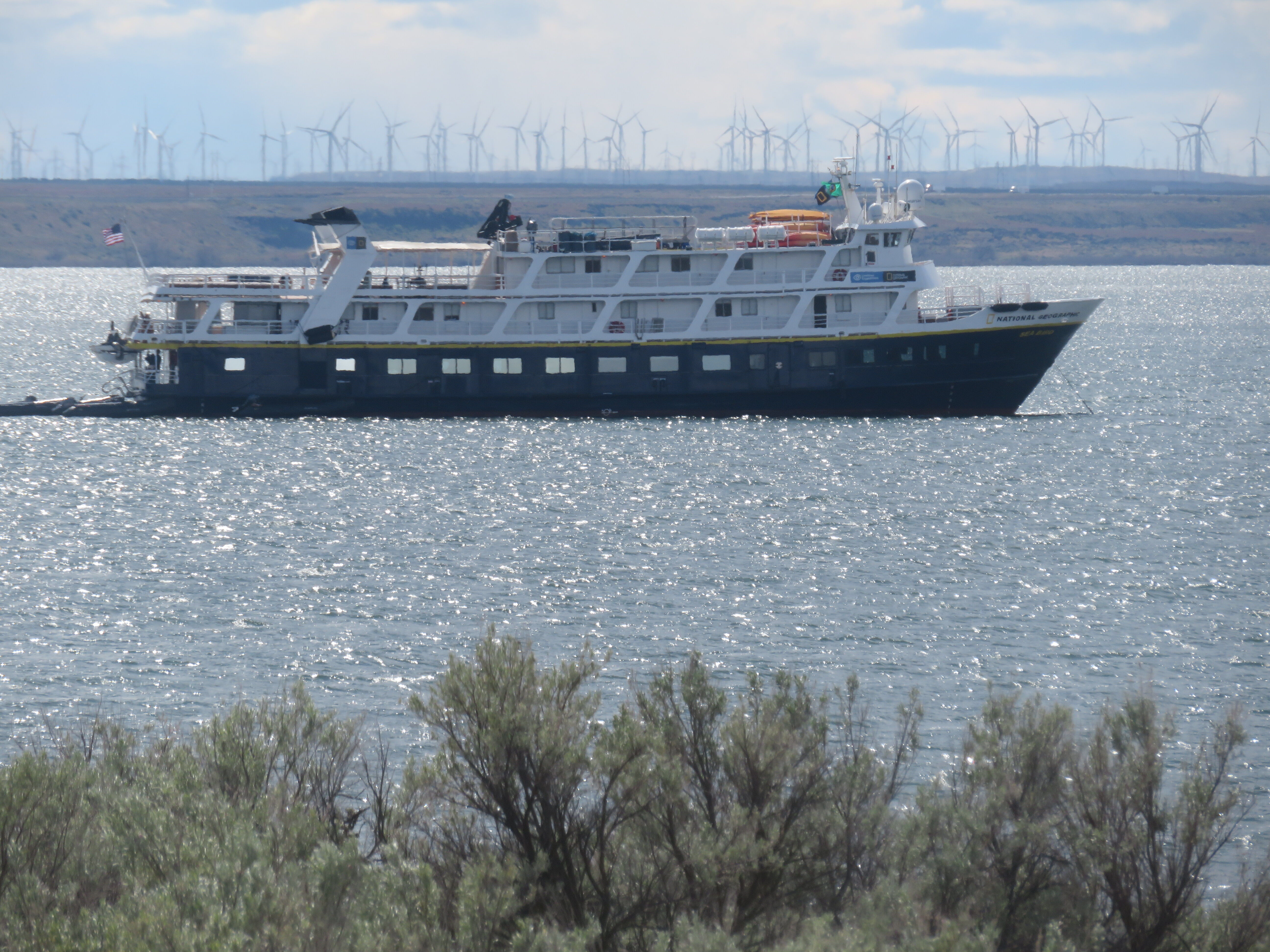 We found several nests of East Pacific sea turtles on the beach. From our Zodiacs and from the shoreline, we observed several males and females swimming around the island. We saw blue-footed boobies, pelicans, terns, and shearwaters fishing along the coast.