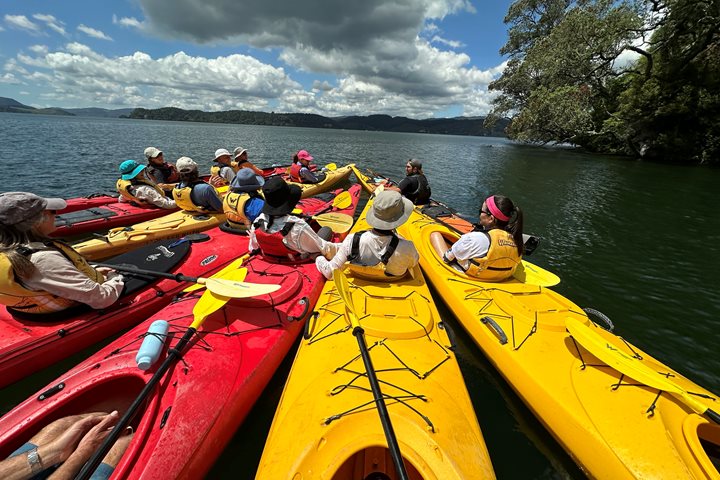 With the clouds clearing to reveal blue skies and milder temperatures, we took the opportunity to explore the sheltered fjord and bays for wildlife. Under fantastic conditions in the afternoon, we landed on the island and hiked across the hills for breathtaking views. We witnessed nesting pairs of royal albatrosses amongst the native vegetation.