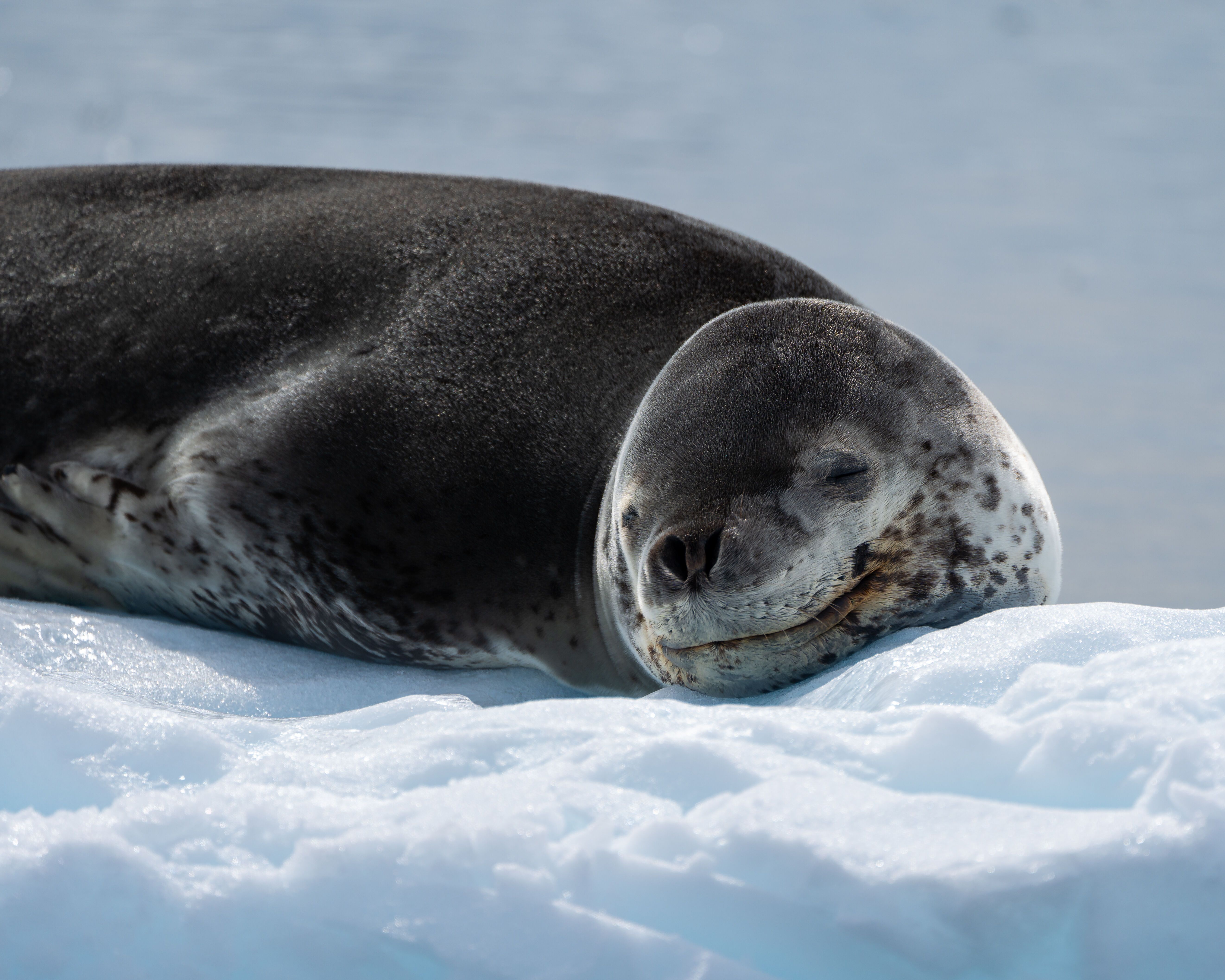 After several attempts to come alongside the fast ice, we opted to ferry guests onto the frozen sea ice with Zodiacs. Some guests chose to cross-country ski while others opted for a blustery stroll over the challenging terrain. There were a few emperor penguins, and many Amelies transited past in some sort of hurry. I am not sure where they were going to or coming from, but they seemed intent. Neither species seemed too bothered by us being there. It was a truly Antarctic summer day, with loose snow whipping around us.