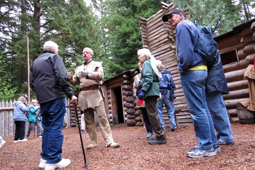First on the day’s agenda was a motor coach ride from Cascade Locks to Multnomah Falls, the nation’s second highest continuously flowing waterfall (611 feet). The name “Multnomah” honors an early Native American people who were virtually wiped out in an 1829 smallpox epidemic. During our hour’s visit to the falls, guests took hundreds of photos and sampled local fudge and Marionberry jam before returning to the boat for lunch.  Other falls (77 identified by geologists), autumn colors, and remnants of the 1915 historic Columbia Gorge Scenic were described en route to the boat.