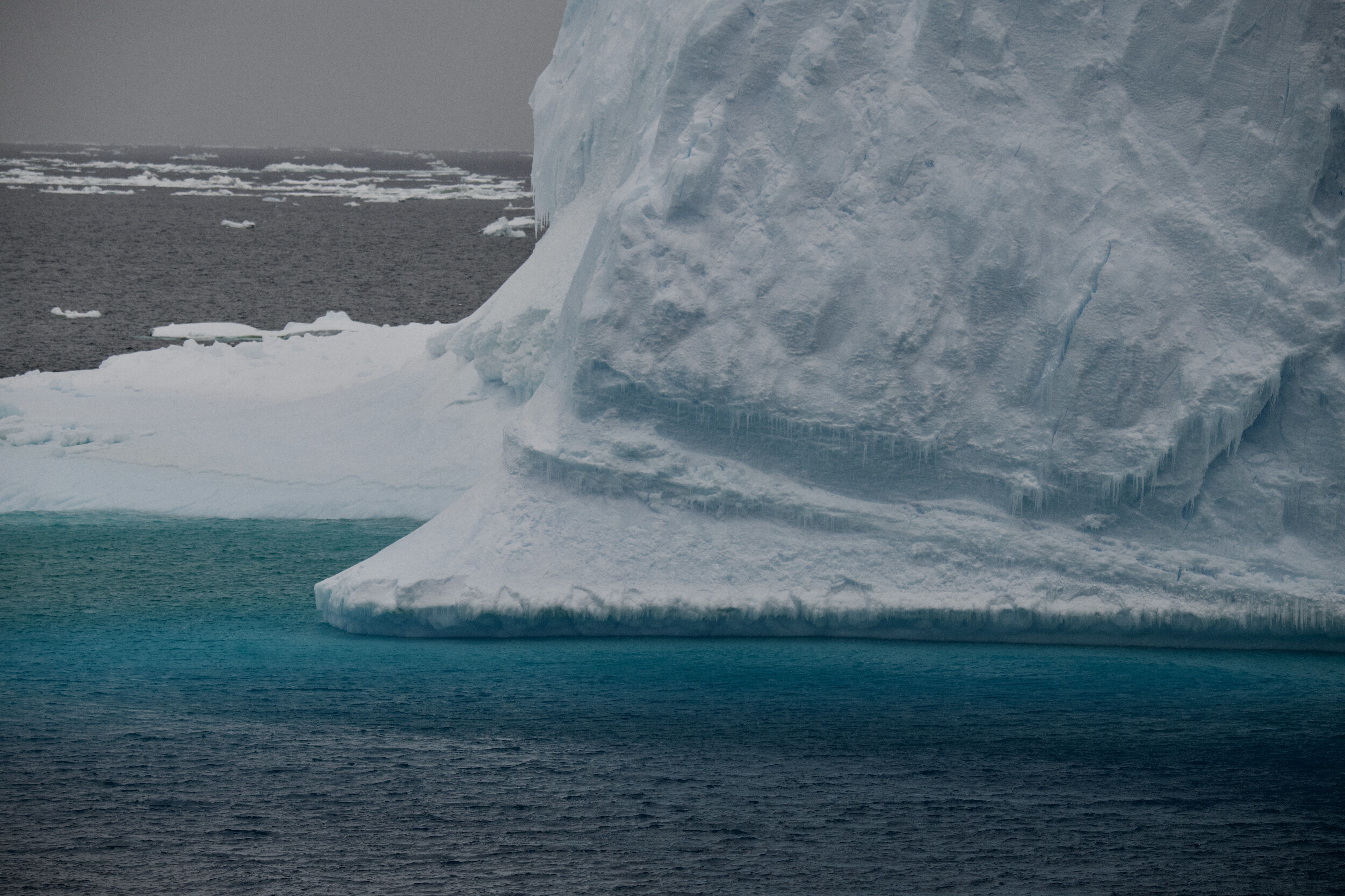 National Geographic Resolution spent the day surrounded by icebergs and sea ice in Crystal Sound as the weather got sunnier throughout the day. Guests experienced Detaille Island during the morning activities. Everyone went on guided Zodiac rides around the island where we saw numerous crabeater seals and icebergs. We stopped to observe an Adelie penguin colony, including dozens of penguins waiting to jump in the ocean. Many people went on shore to see the historic research hut from 1956-58, including all the original canned food and equipment kept in pristine condition. Some guests climbed the snowy hill to see the top of the penguin colony across a deep ravine. In the afternoon, the ship cruised around Crystal Sound so we could see the sea ice, glacial icebergs, and huge tabular icebergs. There were beautiful blue sea caves and arches in many of the icebergs, as well as dozens of crabeater seals on the sea ice. However, two humpback whales stole the show when they appeared in the sea ice near the ship. We could hear their loud exhaling and see them diving up close. The rest of the day was spent relaxing, enjoying a presentation, cocktail hour, recap, and dinner as the sun showed brightly in the west. What a perfect day to end our awesome week in Antarctica.