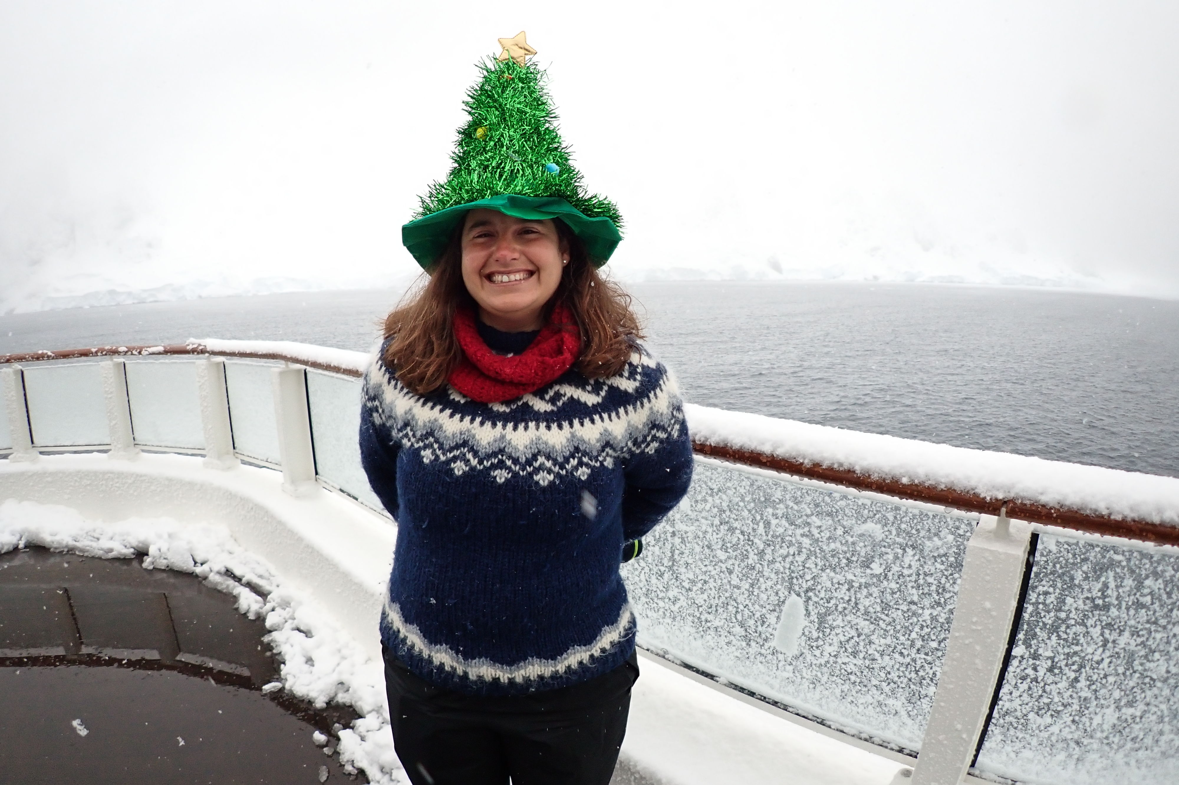 Antarctica treated us to a beautiful landscape with snow falling softly for much of the day before Christmas. We landed on Danco Island and in Neko Harbour. Both sites offered good opportunities for exercise, like hiking to gentoo penguin colonies. When we made it to high points, we enjoyed gorgeous views of the ice-filled bays.