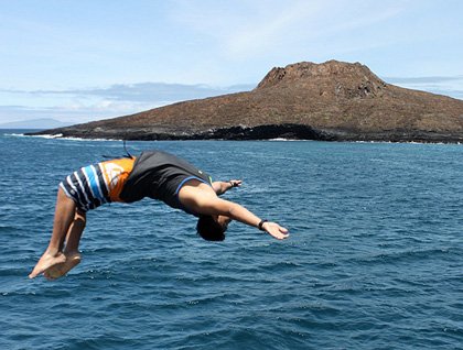 We wandered up a broad valley, where a surprise awaited us. Turning around a last corner we found a waterfall gushing over a rim of more columnar basalt. A few steps more and it was a twin waterfall bringing water from the melt of the first snowfall of autumn on the hills above. Most spectacularly, the twins were connected by a rainbow formed in their spray. Returning to the landing, we found a second surprise: sausages grilled on the beach by our galley staff, washed down with cold brews. Some things just taste best when consumed outdoors!