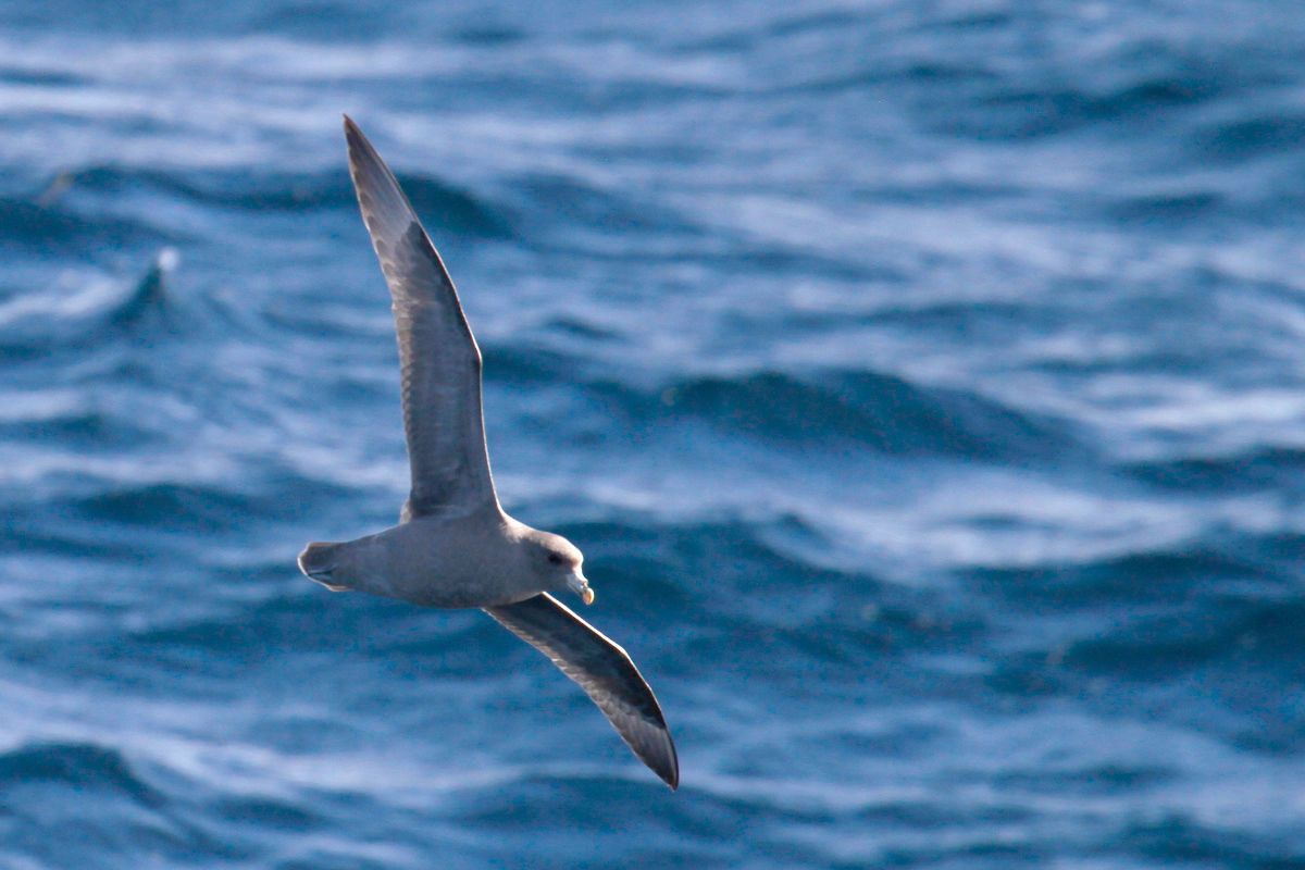 After lunch, we crossed the Antarctic Convergence (also known as the polar front), officially entering the biological boundary of Antarctica and the Southern Ocean. A zone approximately 20-30 miles wide, the convergence defines the separation of the cold surface waters to the south from the warmer waters to the north. Located between 48 and 61 degrees South, the exact position at any given place is defined by this sudden drop in sea water temperature, on average 2.8C to 5.6C, to below 2C. By noon the temperature of the water was down to 1C (33.8F). The Southern Ocean is rich in nutrients, and today we have seen a fin whale, numerous blows from distant whales, and lots of different seabirds, including four species of albatross.