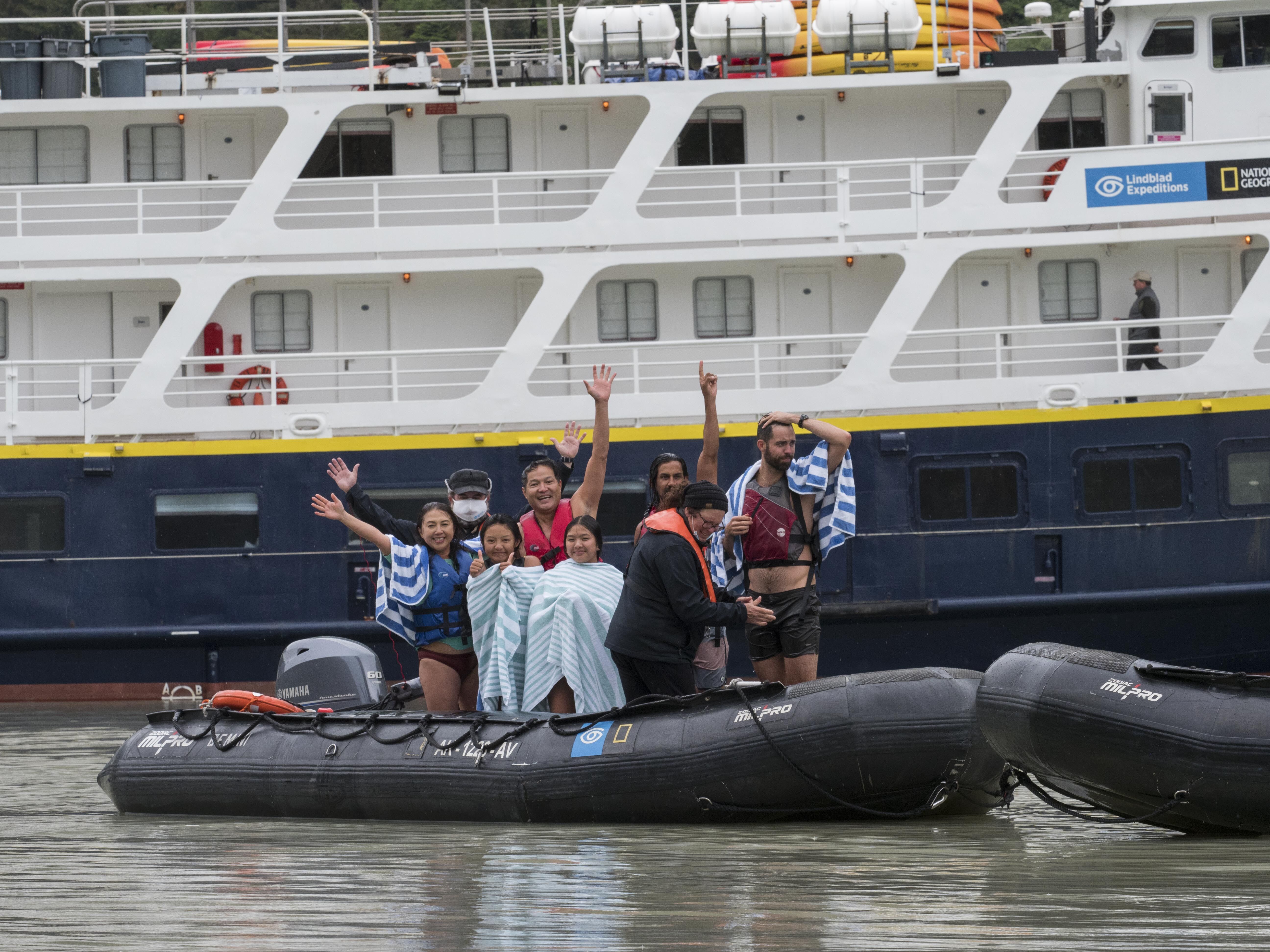 During the night, National Geographic Resolution traveled quite a distance along the northwestern parts of Spitsbergen and in the morning stopped near Sarstangent, a narrow and long sand spit where walruses often haul out. The scouting from the bridge confirmed their presence. For the morning activity, guests were offered landing with, visiting, and observing the walruses resting on the beach. From time to time some of the walruses, probably well rested, moved away and disappeared in the water, others replaced them, coming from the water and joining the group on the beach. After lunch the ship relocated to a nearby Kongsfjorden, offering a spectacular view of a couple of glaciers with ice-covered mountains in the background. The guests had options of a strenuous hike to the top of a mountain for a panoramic view or Zodiac cruising. Large numbers of blue icebergs were scattered in the fjord. Nests of kittiwakes and glaucous gulls were attached to a concaving igneous cliff, providing an excellent shelter from precipitation. Curious harbor seals could be seen around the fjord. The nearby glacial front represented heavily crevassed ice and calved every few minutes. After dinner the guests had a chance to watch the presentation of the voyage slide show. However, the day was not yet over. Later in the evening a few blue whales were spotted near the ship, a very rare observation around Svalbard.