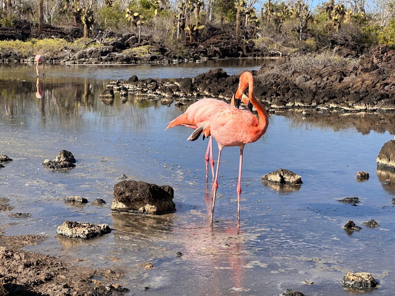 Today we were blessed with perfect weather and beautiful sunshine for all our activities. In the morning, we explored El Barril, a vast expanse of mangrove forest, via Zodiac, paddleboard, and kayak.