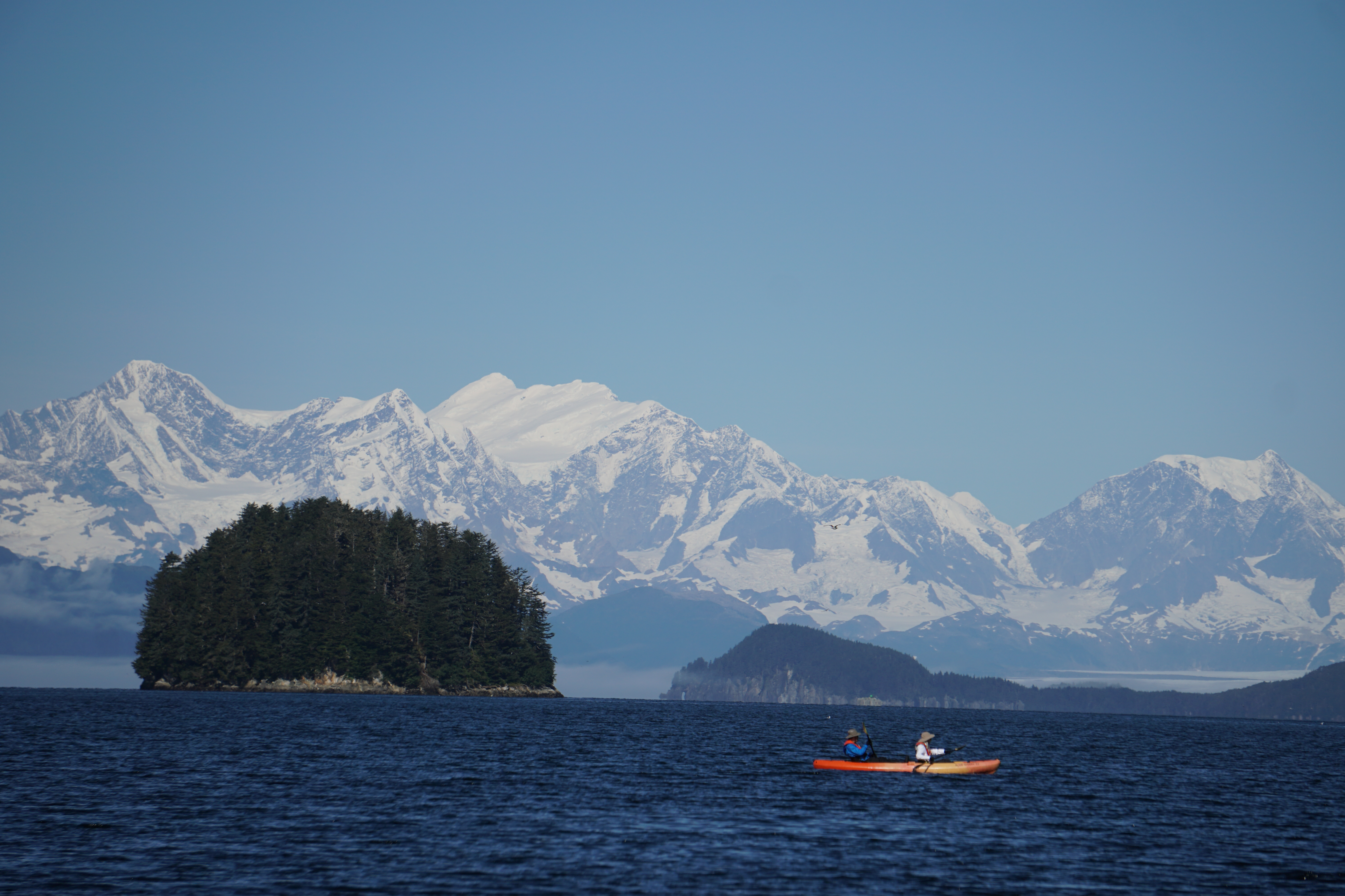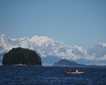 After lunch we embarked on Zodiacs for our first chance to see Dawes Glacier. Dawes is 15 miles long and flows downhill at a rate of four meters or 10-12 feet a day! The immensity of the ice face is astounding, and we were fortunate enough to experience many calving events. Illuminated by unusually sunny weather, glacial icebergs which act as homes to resting harbor seals floated around us. As we cruised down the fjord back to National Geographic Venture, expert eyes found a low-lying mountain goat nanny and kid. What a spectacular day!