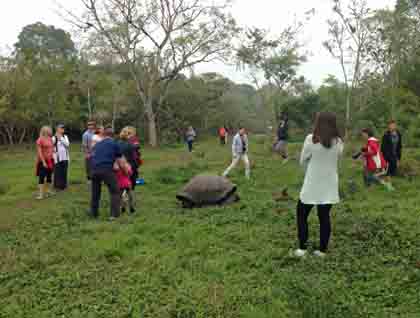 At 3:45 p.m. we disembarked at this historic place, where many human stories are told. Floreana is known as the island of mysteries and tragedies. It was here that the first Ecuador president, Juan Jose Flores, sent people to claim Galápagos as soon as Ecuador became a country in 1832. We dipped our hands into the old post office barrel to collect some letters or post cards and checked the addresses. By tradition, if a traveler finds an address that’s close to home, the traveler is supposed to hand-deliver it when he or she returns. This was how the old mail system worked for the whalers and how it works nowadays with all our visitors.