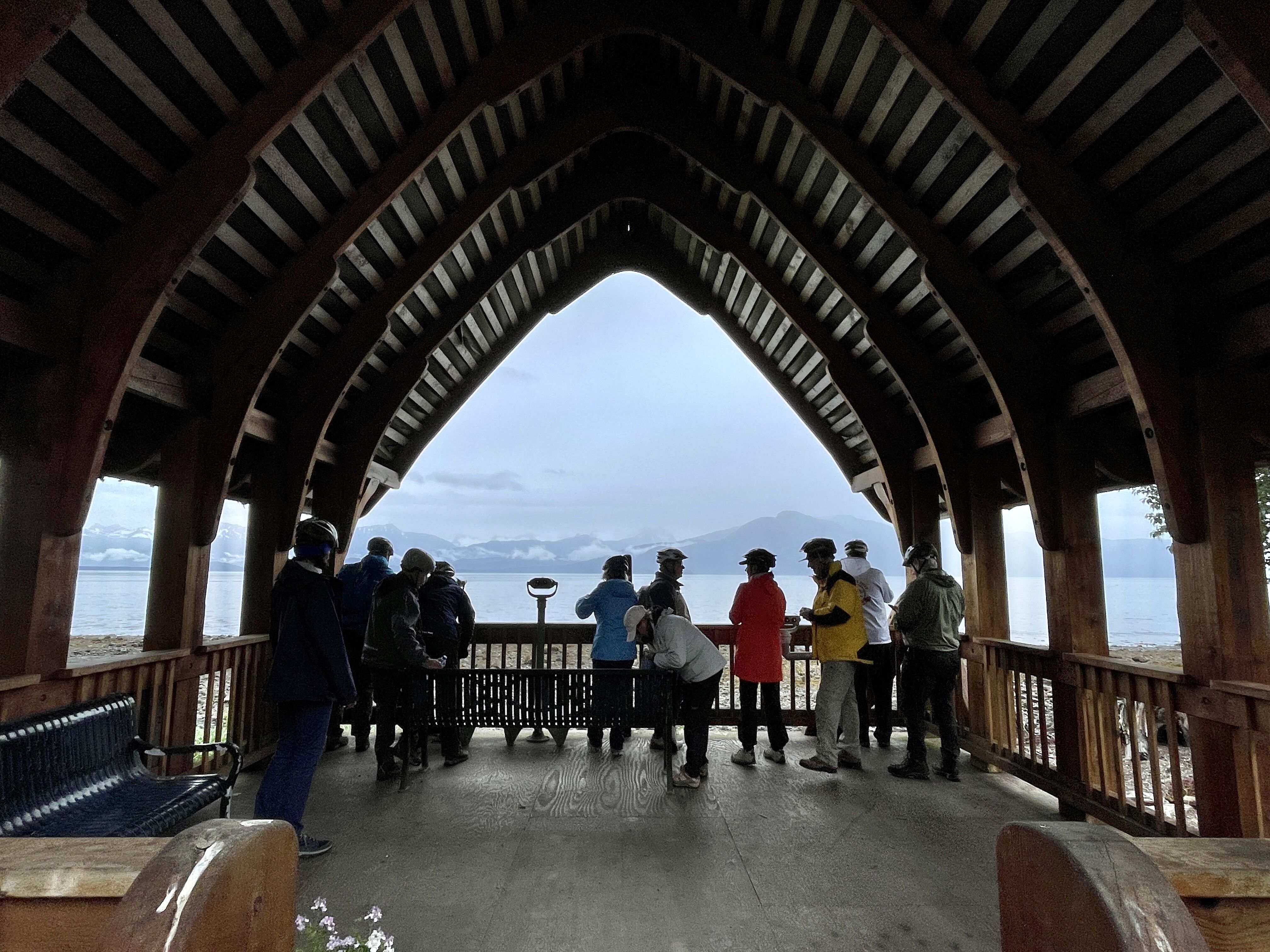 Cruising throughout the night, we awoke to the sheer granite walls of Endicott Arm rising thousands of feet above our heads. Clouds filled the sky beneath the peaks of the surrounding mountains in the fjord, more appearing as we approached Dawes Glacier. We maneuvered the ship through an open path in the ice to the glacial face. Our guests were able to spend at least an hour at the face of the gorgeous glacier. We got as close as is legally possible. The sun was shining behind the glowing blue ice as we crossed back and forth. Pupping season fully underway, we were able to view mother harbor seals nursing their young on floating blocks of ice. Our guests were surprised by the arrival of hotel staff in Zodiacs. They were dressed as Vikings, and they gave us spiked hot cocoa.