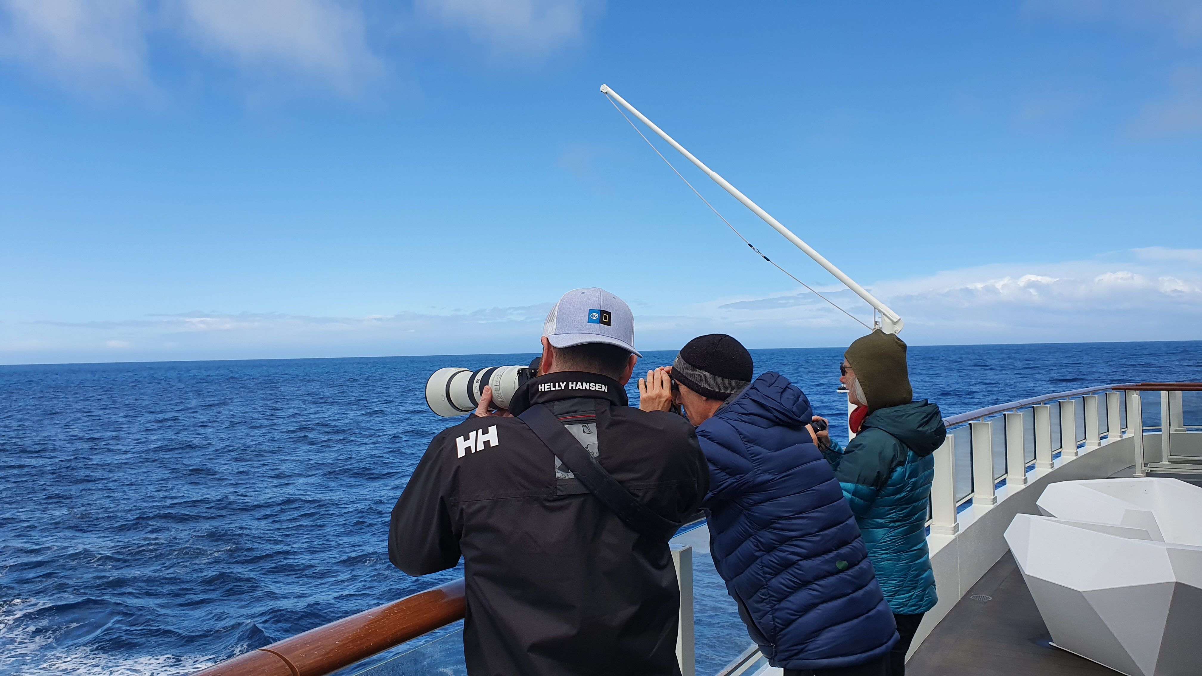 Fully refueled with lunch, we transited northwest to St Andrews Bay. On the way, some of us were lucky to see humpback whales passing by in the distance. Arriving in the bay to perfect blue skies and calm winds, we made our way up to the vantage point to observe the 150,000 breeding pairs of king penguins, the largest colony of king penguins on South Georgia. The land was carpeted with the black, white, and orange colors of the adults, along with the fluffy brown (“Oakham boys”) king penguin chicks.