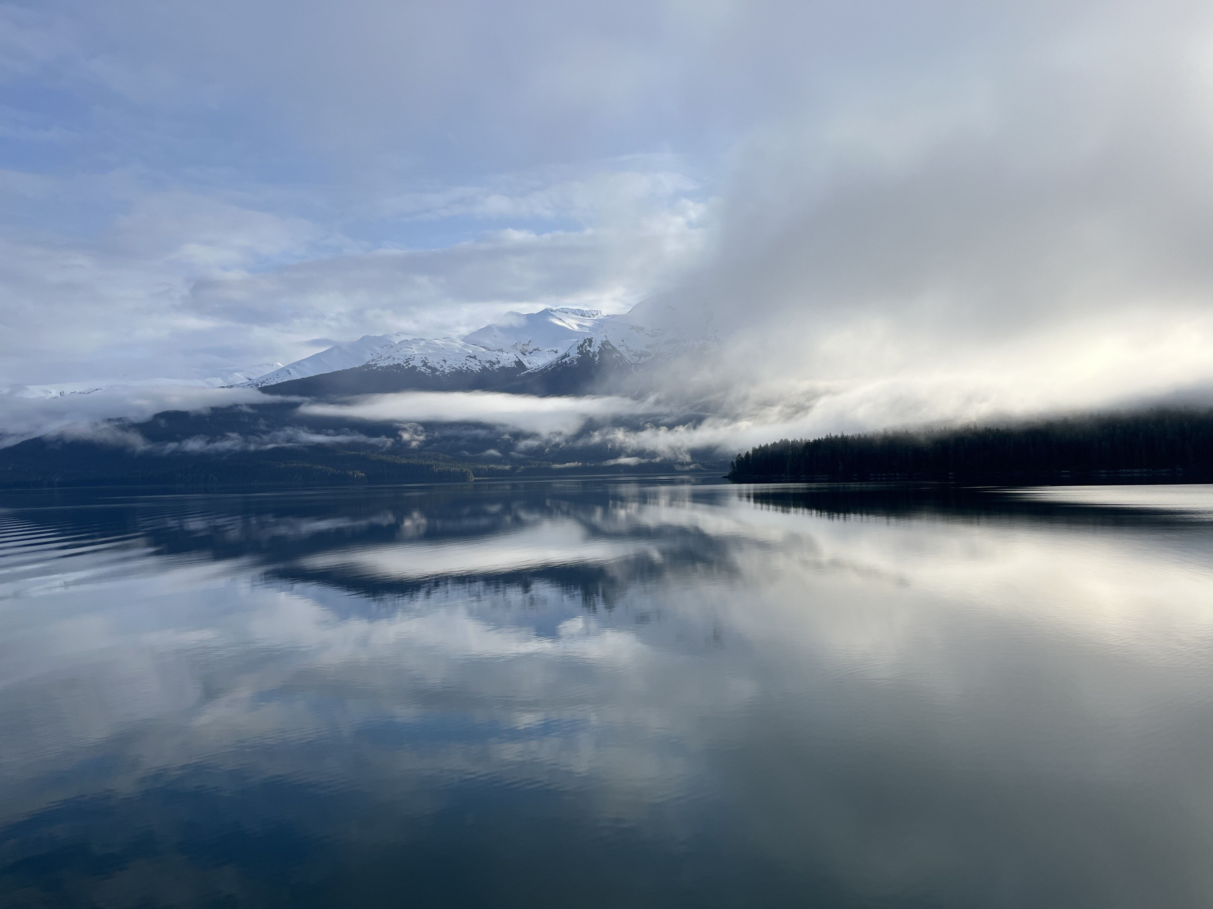 National Geographic Quest arrived at Green Inlet in brilliant sunshine this morning. All onboard enjoyed arriving accompanied by rays of sunshine pouring through the forest that blanket the steep hills. Guests spent the morning kayaking and touring the local area by Zodiac. Zodiac cruisers found a variety of birds and tumbling waterfalls.