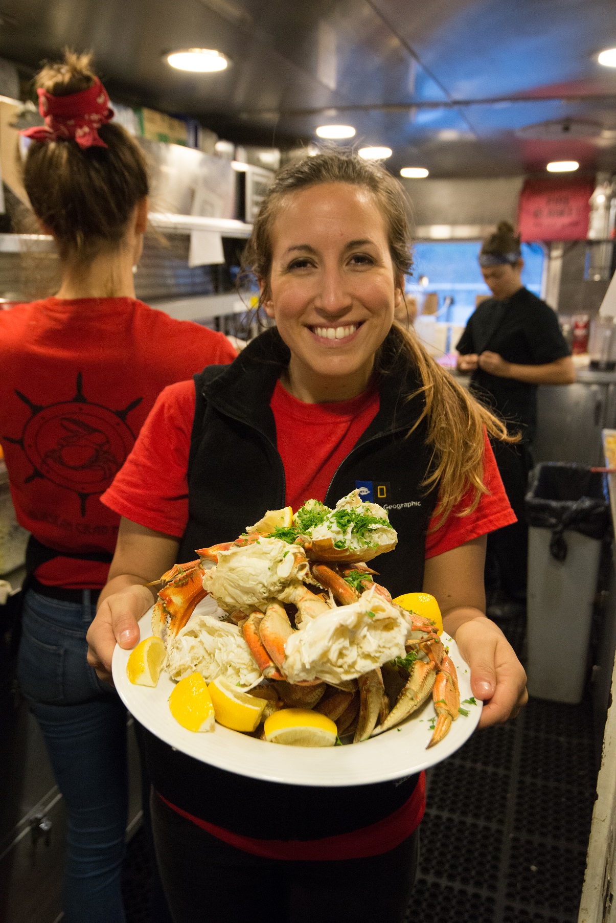 Navigating north with the assistance of some of our younger guests behind the wheel, our junior captains brought us to Kasnyku Falls. After dropping anchor, a small handful of guests, along with the captain and some crew, bravely battled the frigid Alaskan waters and went for a polar plunge. Once all were back on board and properly warmed up, we pulled anchor and headed back into the glassy waters of Chatham Straight in search for more of everything that this incredible place had to offer. And what an offer it was, because after dinner we were treated to a single humpback whale bubble-net feeding right next to the ship in the evening twilight.