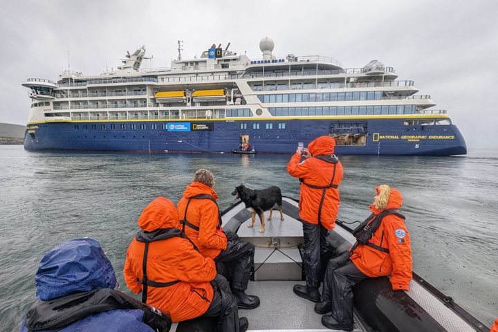 First off, we went to Half Moon Island, named because of the island’s half moon shape. The landing was a little tricky, but soon we had everyone ashore and dry to go hiking and visit the chinstrap penguin colonies. An adélie penguin was well spotted by some guests as well. Everyone was back on board by 12, and National Geographic Orion then sailed a short distance away to Yankee Harbour, where we all piled off into the Zodiacs armed with snowballs to pelt at those ashore during a snowball throwing drive-by. Lots of deep snow ashore at this site made it a bit more challenging, but it’s a real Antarctic adventure!