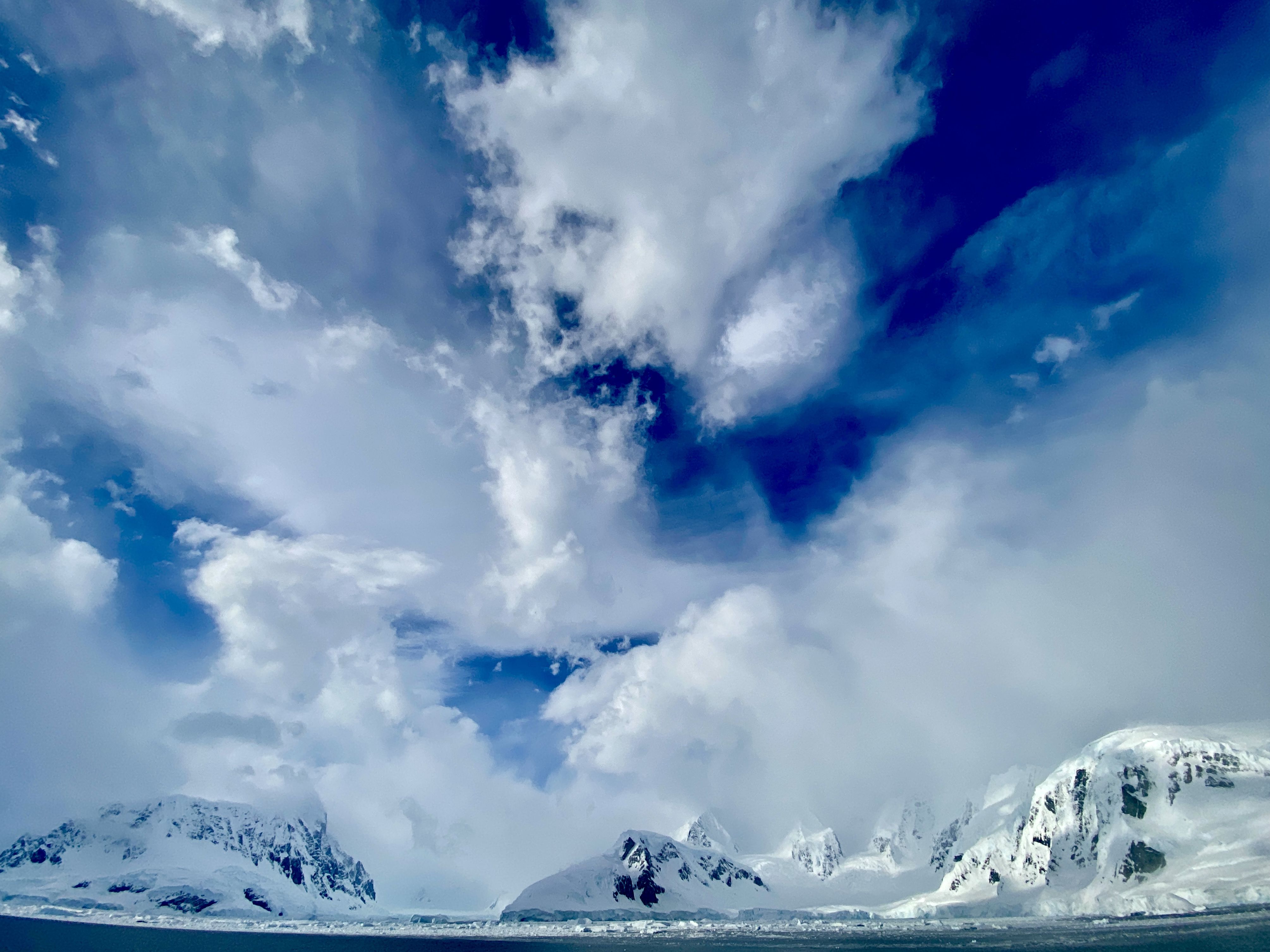 We started our adventure today at Hidden Bay, an area first explored by Gerlache in the late 1800s and named by the UK Antarctic Place-Names Committee in 1958 as it is hidden from the north by a set of islands. The fierce weather that had been following us continued to make its presence known in the morning. As we prepared to enter our Zodiacs, the snow was falling hard and being swept into our faces with the wind. However, the sight of ice in the water, beautiful mountain peaks, and snow along the shores kept the grins on our faces as we plunged through the water to explore the bay.