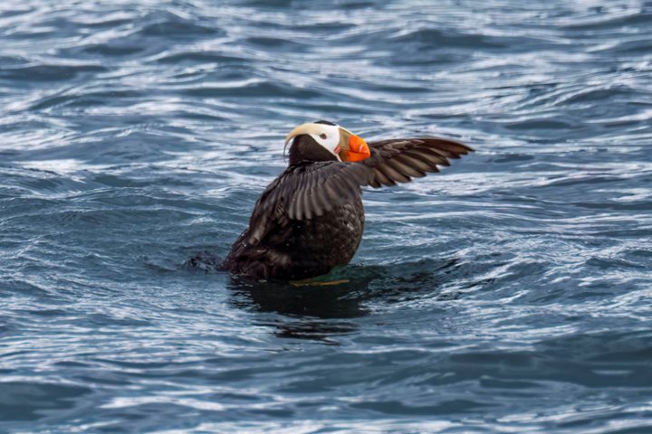 Navigating the channels in our Zodiacs, we watched as pigeon guillemots, pelagic cormorants, gulls, and bald eagles soared overhead. The ever-productive waters of these islands produce plenty of baitfish for all these species – and more – to enjoy. The lively scene continued as we came across a colony of Steller sea lions lounging on rocks and playfully swimming around us. Their antics and distinct calls added to the fascination of our expedition.