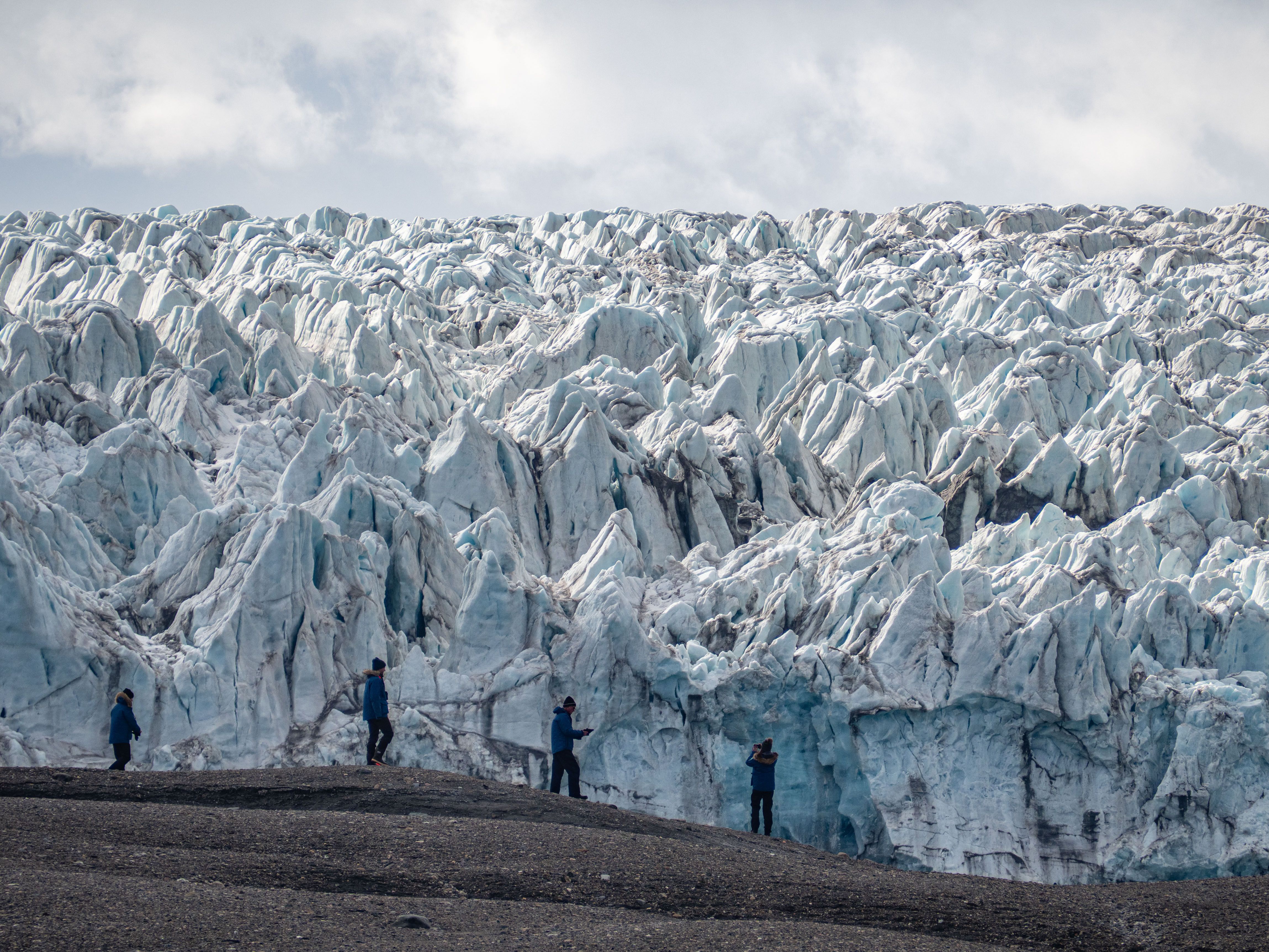 Today, we embarked on a voyage through the breathtaking Endicott Arm, a 30-mile fjord carved by ancient glaciers. As our vessel glided through the jade-green waters, towering granite cliffs rose on either side, with cascading waterfalls fed by melting snowfields. The fjord's serene beauty was punctuated by the occasional splash of harbor seals diving from ice bergs and the distant sight of mountain goats navigating the rugged terrain. Approaching the terminus of the fjord, the awe-inspiring Dawes Glacier came into view. Standing over 500 feet tall and half a mile wide, its icy facade shimmered in hues of blue and white. We boarded Zodiacs to get a closer look, maneuvering through a maze of icebergs, each uniquely sculpted by nature. Suddenly, a thunderous crack echoed as a massive chunk of ice calved from the glacier, crashing into the water below and sending ripples across the fjord—a humbling reminder of nature's power. The journey through Endicott Arm was more than a scenic cruise, it was an intimate encounter with the raw, dynamic forces that shape Alaska's wilderness. The memories of shimmering glaciers, playful seals, and towering cliffs will linger, a testament to the allure of this pristine frontier.