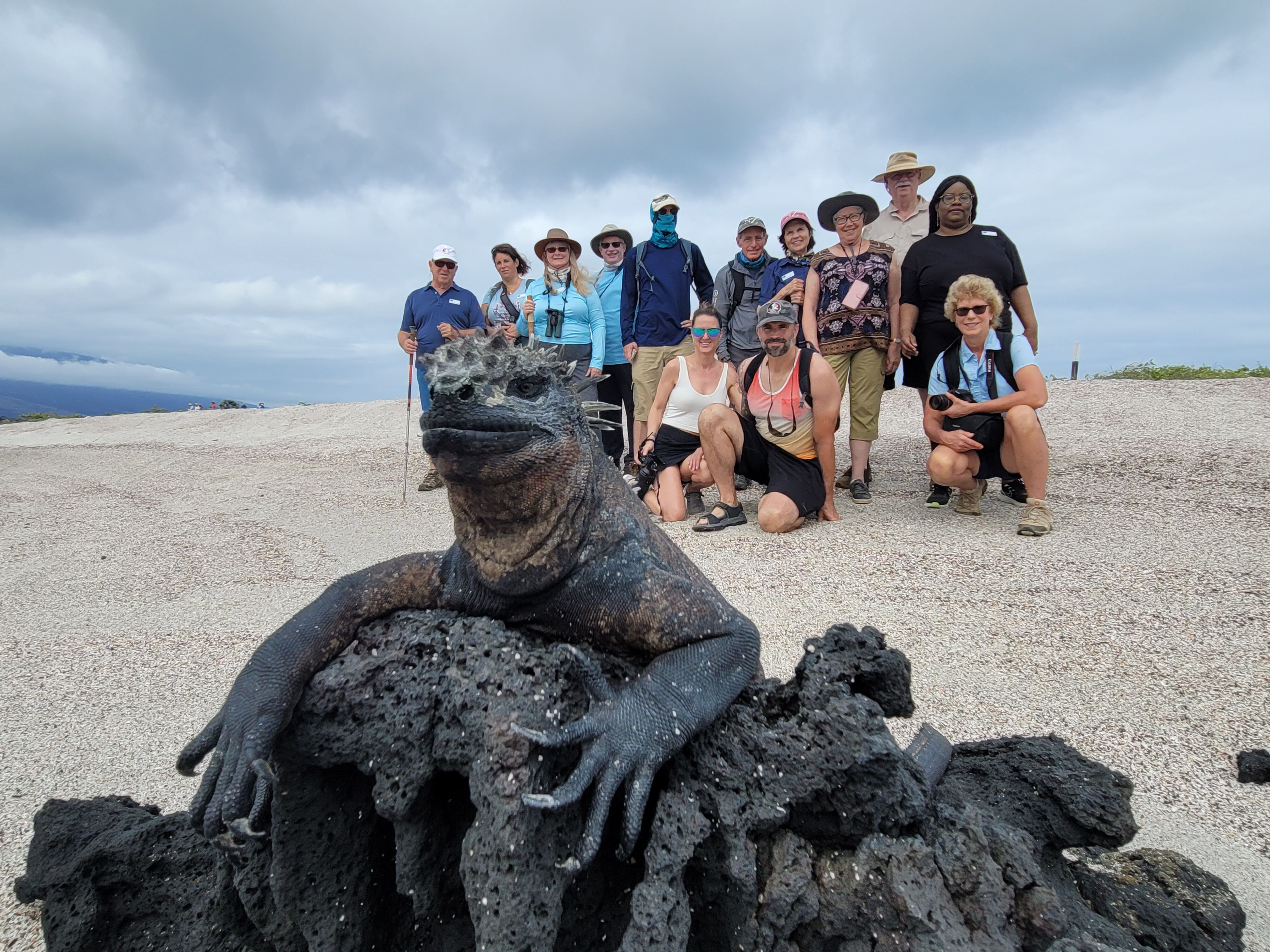 Snorkeling was amazing. The area was full of sea turtles and playful sea lions. We had a delicious lunch on board, and we went hiking at Punta Espinoza in the afternoon. Lots of baby sea lions greeted us along the way. Now is the time of year when the islands are sea lion nurseries. We saw large groups of marine iguanas, the most abundant species in the area, along with Galapagos hawks, pelicans, and more.