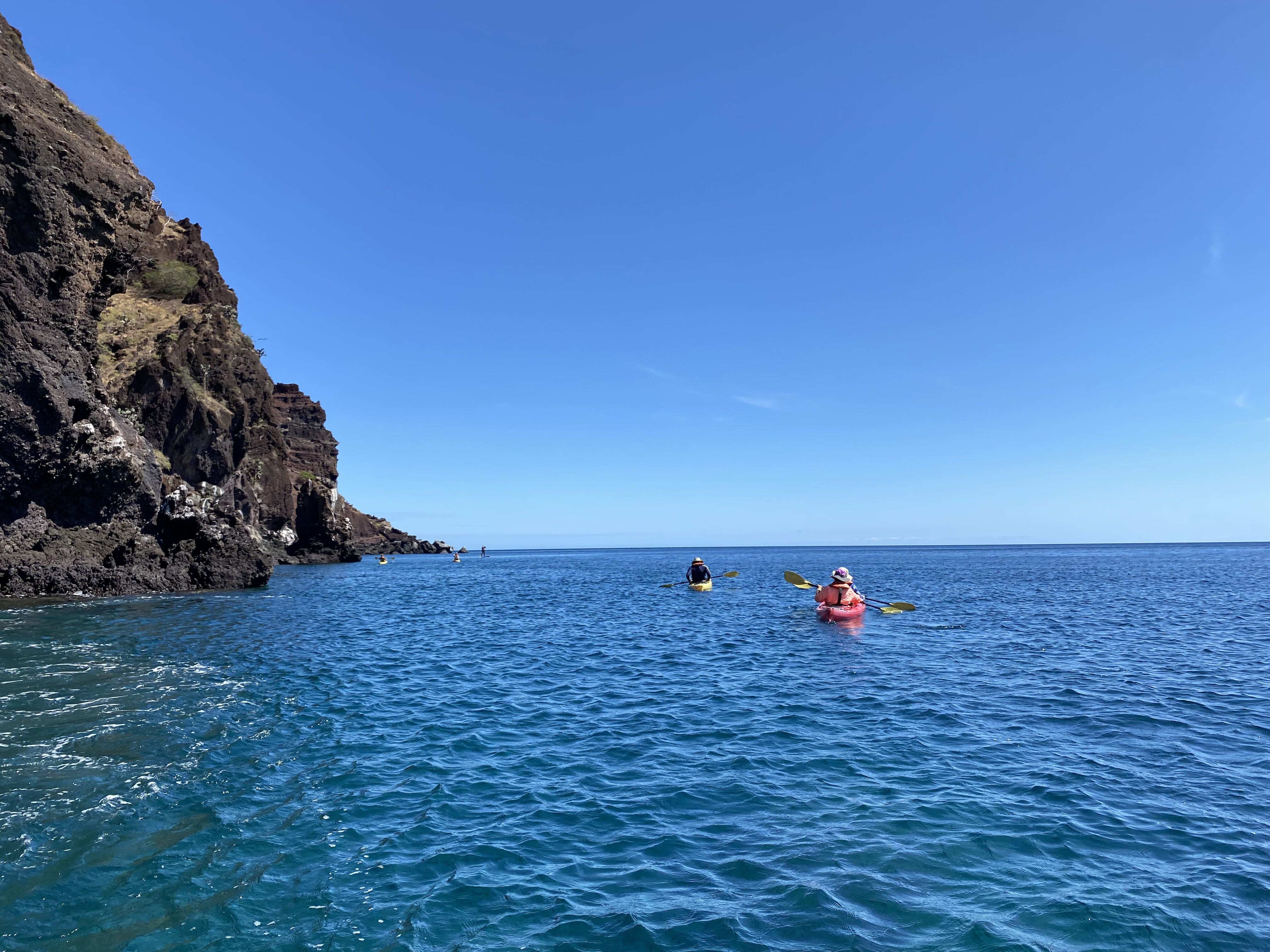 Lunch featuring Mexican fare is always a favorite. After the delicious meal, afternoon activities took place, including snorkeling, kayaking, and paddleboarding followed by vigorous hikes and Zodiac rides around the coast of Tagus Cove. We spotted flightless cormorants, Galapagos penguins, different species of fish, sea turtles, Galapagos sea lions, brown pelicans, finches, and mockingbirds.