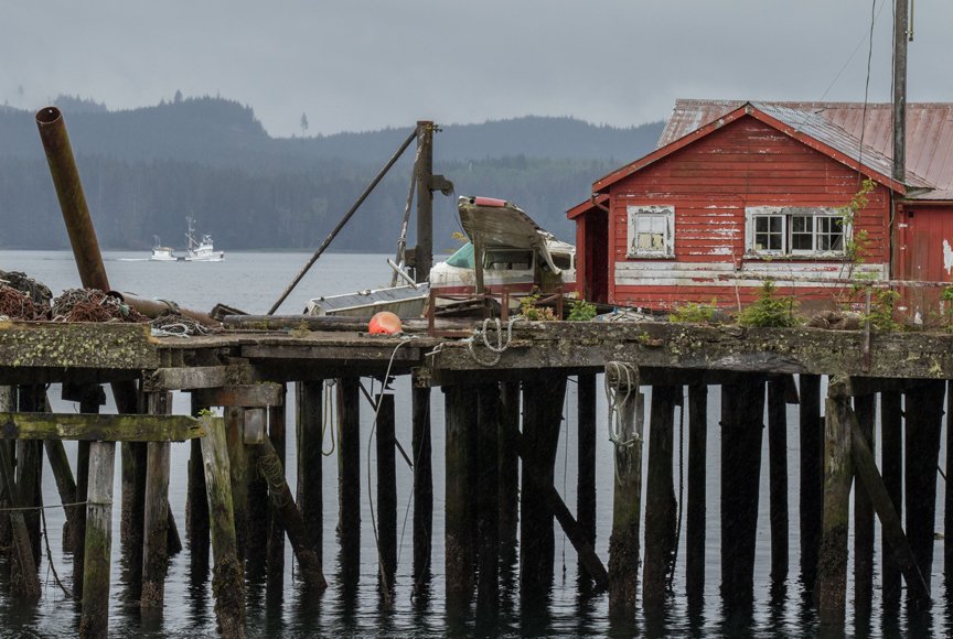 Boarding again for lunch, we continued to peer toward the shoreline in hopes that some wildlife would appear, and appear it did. After a morning where Dall’s porpoises were excitedly riding our bow, the marine mammal show was just getting started. Encountering our first humpback whale of the trip, we watched as it repeatedly dove in search of a meal - the first sign of many more to come. Our next visitor was a brown bear on shore, turning over rocks during the low tide in search of a vagrant fish or mussel to turn into a meal. But the crown jewel of the day was the rarest of bears upon the northwest coast – a spirit bear! Pulling into Butedale, our planned anchorage for the evening, which is spectacular for its history of the collapsed cannery and nearby waterfall, we were treated to a sighting of the genetic anomaly of a black bear with a creamy white coat. Guests abandoned their desserts to rush to the bow in order to catch a sighting, and though the rain was strong, our excitement encouraged us to stay.