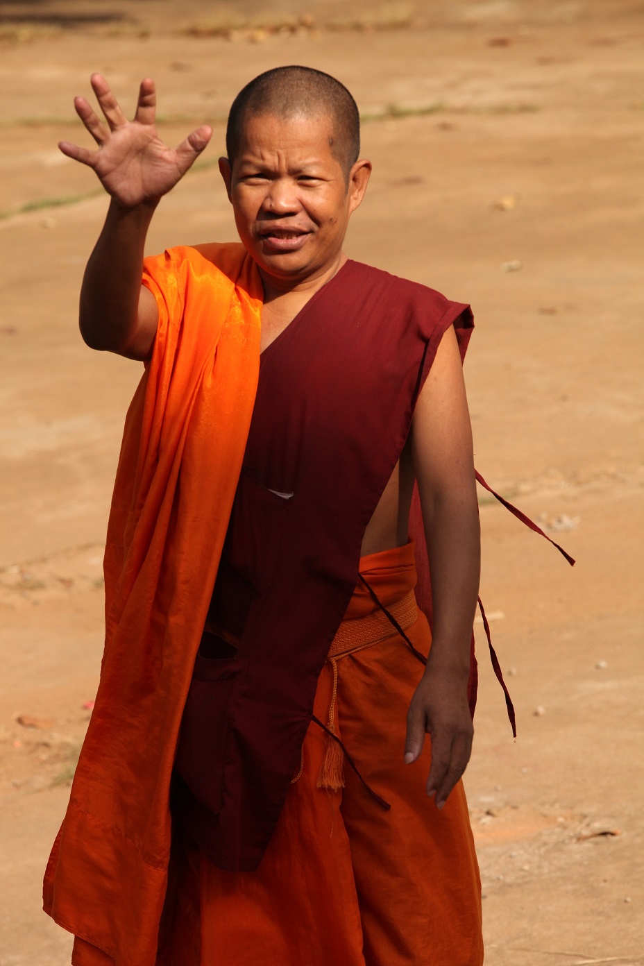 What a terrific day today! As the sun warmed the eastern skies we toasted the day with coffee and croissants. By 6:30 a.m. we were climbing up the Tonle Sap riverbank to a row of oxcarts waiting on a dusty road. Everyone climbed in and we were off, traveling down the rutted road as the sun rose in glorious colors. After ten minutes or so we stopped for a break in a rice field, where our guides talked about rice growing and harvest. We also trekked out to a lotus field where we picked a lotus pod and tasted the seeds (nutty and delicious). On the way back to our carts we found a frog, agamid lizard, and photogenic spiders. Once back onboard our carts we headed into town to visit a small school. A highly motivated young teacher has created an English language program for almost 300 students. We arrived for the flag-raising ceremony and national anthem followed by a visit to the classrooms. Here the kids treated us to English and Khmer songs and everyone practiced their English together. We returned to the ship by motobike-drawn-carts for a well-earned breakfast.