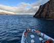 Baja is known for its sunsets and sunrises. Sailing north in the Pacific Ocean, the sky lit orange and the clouds red, as dawn broke. Gulls passed by with a stiff north wind as whales spouted around us. At the entrance to Magdelena Bay, National Geographic Venture steamed on, marking a new leg to our expedition.