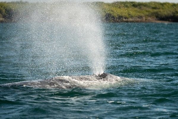 After a nocturnal navigation along the southwestern Pacific side of the peninsula of Baja California, National Geographic Sea Bird made it to the quiet waters of the Magdalena Coastal Lagoon, a complex of five pieces of sea flanked by five barrier islands, which the gray whales make their reproductive grounds. Along the way, we spotted some blows from humpback and gray whales, and dozens of sea birds soaring over the sea. Just before lunchtime, the ship entered the protected bay and a stretching session soon started in the sundeck led by our wellness specialist Michelle. Some guests and naturalists enjoyed, for a while, the view of the mountainous part of the Magdalena Island, and the vast, flat, endless extension of the Magdalena plain on the peninsula. As a part of our navigational operation in the canal, we picked our local adviser Sergio and continued sailing northbound.