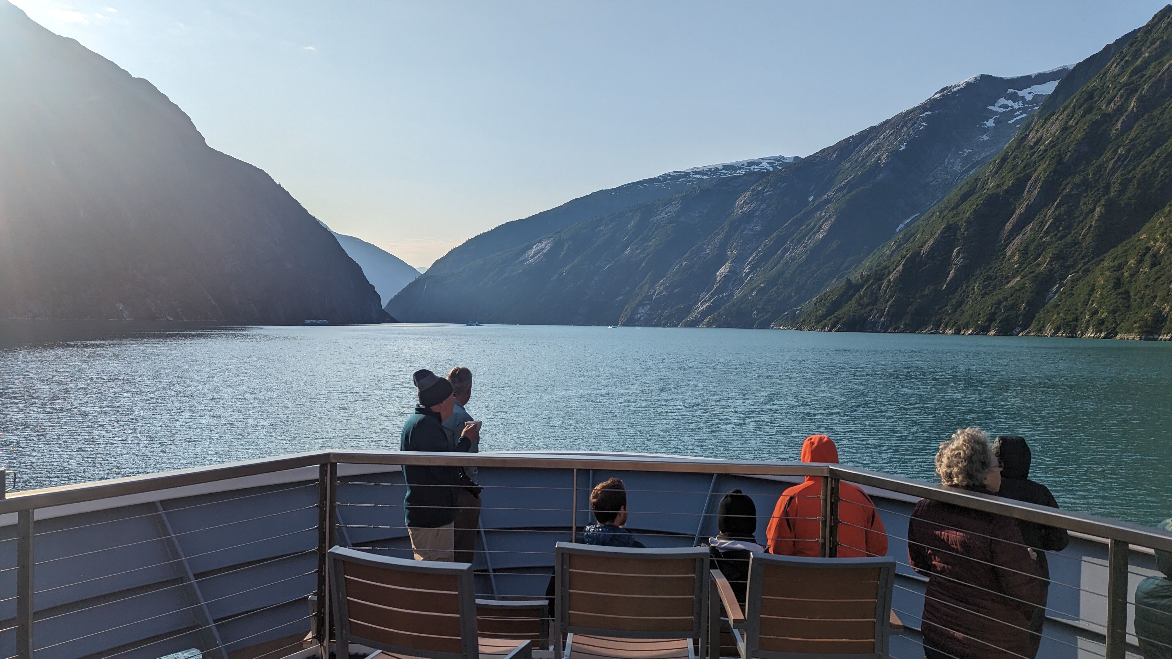 After a hearty chili lunch, we continued through the Behm Canal on our way to tomorrow’s destination, Wrangell. Throughout the day we were surrounded by low-lying smoke from distant Canadian wildfires, creating a beautifully eerie and moody atmosphere. Starting with the sunrise and through to sunset, diffused pink light illuminated the mountains and cliffs around us as we sailed through exceptionally calm waters. We ended the evening with cocktail hour, recaps by our naturalist team, and a delicious dinner by our chefs.