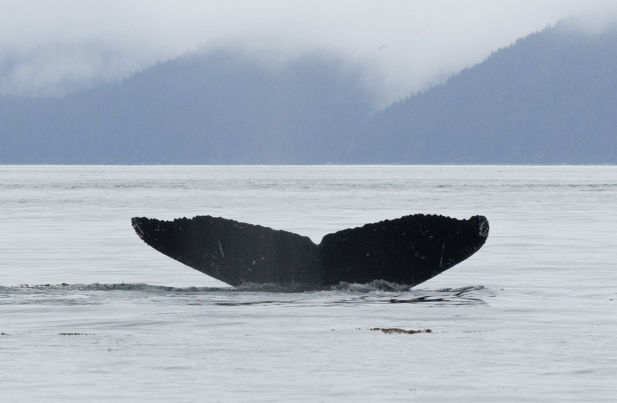 Dawes Glacier, located at the head of Endicott Arm in Southeast Alaska, is an active tidewater glacier in the remote Tracy Arm-Fords Terror Wilderness Area. Reaching the glacier requires a 30-mile journey through a narrow fjord lined with sheer rock walls rising over 3,000 feet. These cliffs are veined with waterfalls and often blanketed in mist. Throughout the fjord, remnants of the glacier float in the form of icebergs. The glacier feeds cold, silty meltwater into the fjord, giving the water a distinctive milky-green hue and supporting a rich marine food web. Harbor seals were hauled out on ice floes near the glacier. Gulls and Arctic terns were actively feeding, likely drawn by the small fish and plankton concentrated by the glacial outflow. The glacier calved several times, hurling large chunks of ice across the water’s surface, sending the birds fleeing. The sound of the ice hitting the water echoed off the steep rock walls that rise thousands of feet on either side.