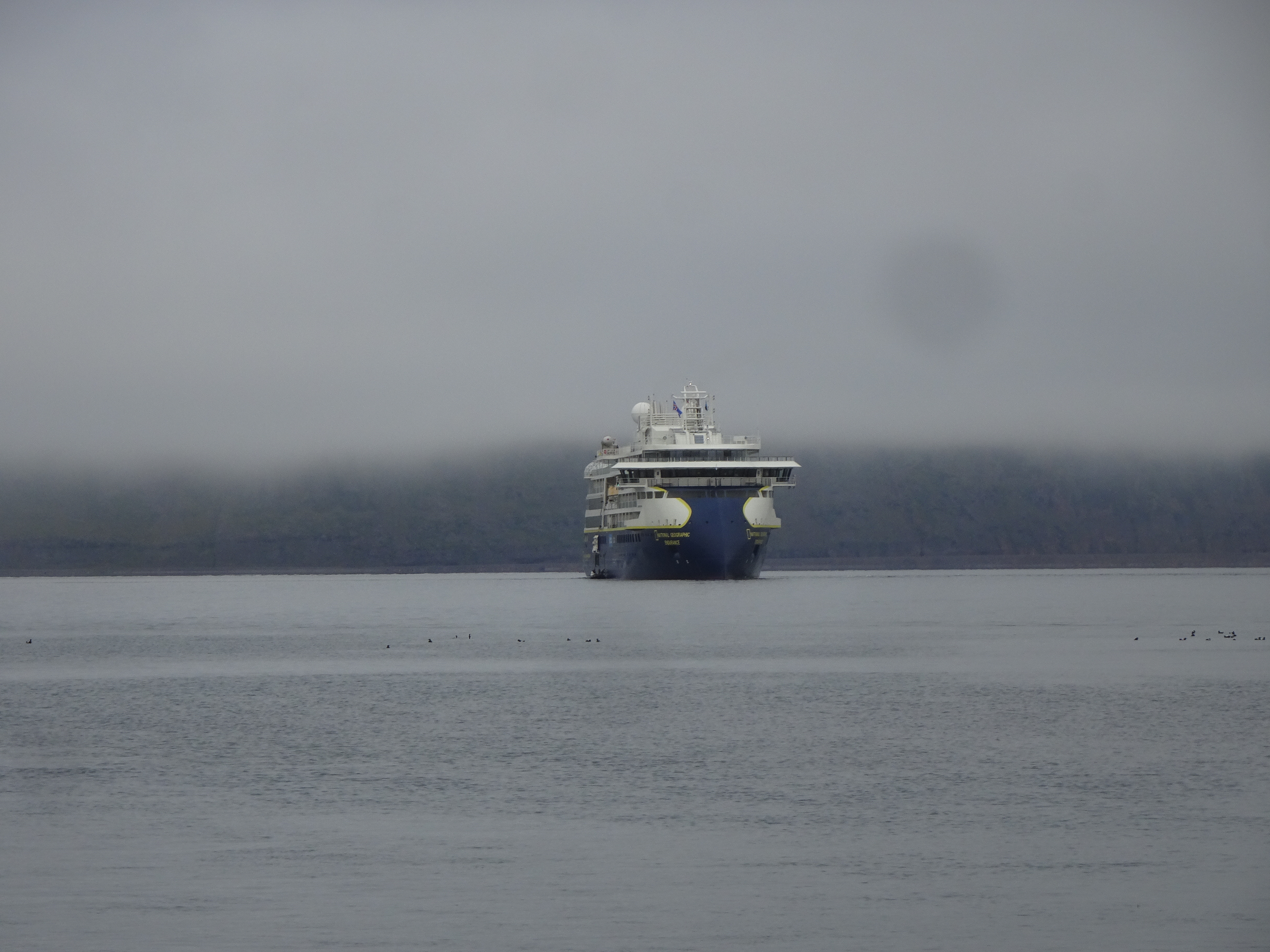 The final activity of this weeklong excursion was a kayak and Zodiac tour in Punchbowl Cove. The spectacular gray granite cliff on the north side of the cove is truly remarkable. This rock was once molten rock that solidified under great pressure, 50-70 million years old, and now towers over the fjord. Evidence of past volcanic activity is also visible in Punchbowl by perfectly hexagonal columnar basalts.