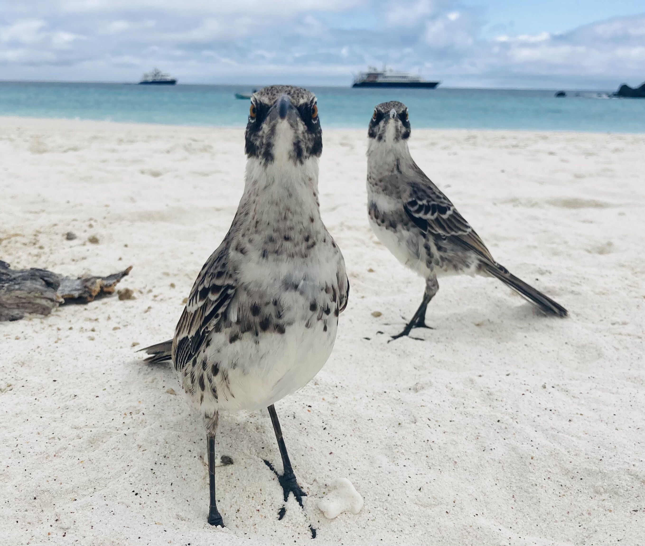 A line of giant air bubbles, nearly as large as basketballs, surface in a giant arc beside our ship. That arc slowly turns into a broad spiral, nearly closing into a circle as 70 people rush to the rail to look down at the spectacle. As cameras click, six giant heads emerge from the water, mouths agape. Tiny silver herring not trapped, flip one way and the other, narrowly escaping the trap.