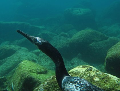 Sometimes to really have an adventure you need to get off the beaten track. As if travelling to Antarctica wasn’t far enough off, today we truly went off the map in a sense. Unperturbed by a morning snow falling heavily our Zodiac fleet took off into the fog, strung out in a line like some sort of orange and black parade. Early stages of sea ice were starting to form on the surface due to the lack of wind, along with a brisk air temperature. Greasy, almost viscous-looking water was congealing and freezing into disks, or “pancakes”, that if conditions continued would connect into continuous sheets of ice. Our trusty Zodiacs have no problem silently slicing through this still somewhat slushy sea. The fog starts to lift as we pass along the steep shore lines, towering peaks above, so laden with snow that the new addition of precipitation causes gentle cascades that can be seen pouring down from afar.