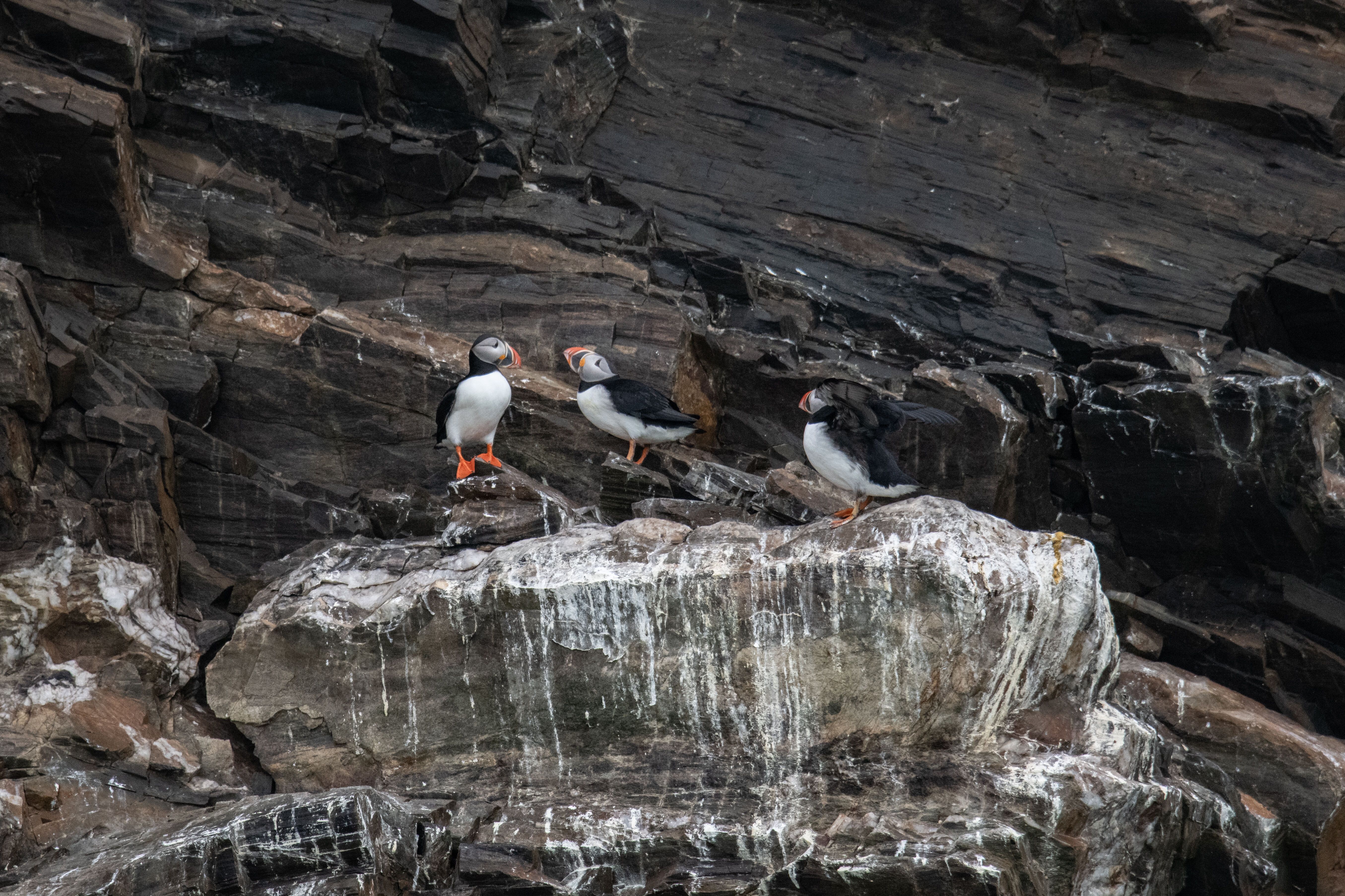 A nice morning that only got better and prettier and sunnier! Truly a gift to bring guests here to witness the scale and diversity of ice and wildlife. South Marble Island had so many tufted puffins, and a few unexpected horned puffins, with sea lions and humpback whales galore. During lunch, we cruised up towards Margerie Glacier to view the impressive glacier and look for Arctic terns. Afterwards, we went past Gloomy Knob and saw mountain goats, looked for wildlife at Russel Cut (saw an osprey!), and ended the day with a stunning colorful sunset with an abundance of whales!