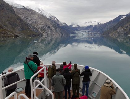 We were back on board by 1830 for the Captain’s Welcome Cocktail Party, which turned out to be the peak of excitement for the day. Just as Captain Komakin took the microphone to introduce the ship’s officers under the canvas of the lido deck, the skies opened and a walloping thunderstorm set in, dumping a deluge of water onto the canvas above while lightning flashed and thunder roared around us. The deck crew scrambled to the lido bar to push out the water that was weighing down the canvas, lest it collapse, and everyone started wondering what happens if lightning were to strike the masts of a tall ship. The expedition leader took the microphone to announce that this front would quickly pass in the next 15 minutes, and that we would stay in the shelter of the lido bar canvas and enjoy the rest of the cocktail party before venturing down to dinner. He also reassured us that with lightning rods on each of the hollow steel masts and a steel hull, there was no need to worry about lightning strikes.