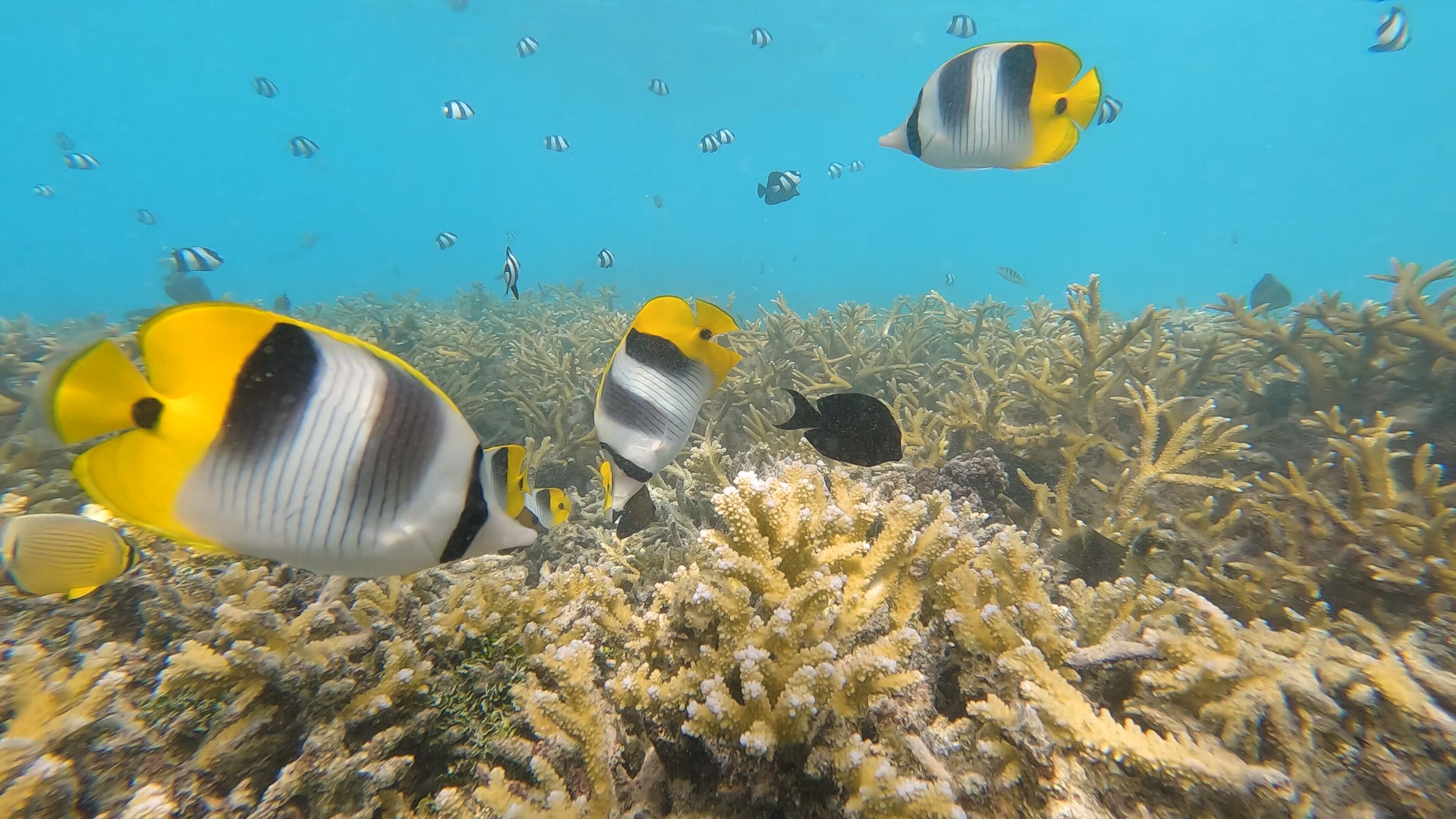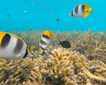 From the top, the view was spectacular. The flat terrain made our hike easier. Some blue-footed boobies use the area for nesting; we observed several of them incubating their eggs. In bushes and trees, red-footed boobies did the same. They have a brown or white plumage and a blue bill. Their fluffy chicks were the delight of our guests. In the distance and closer to the ocean, Nazca boobies nested on the ground or on flat rocks, leaving their white guano everywhere. In the air, frigatebirds and blue-footed boobies glided like kites as they looked for fish in the immense ocean.