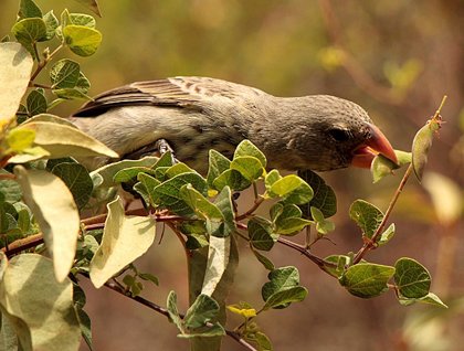After a wet landing, we sought a good clearing between the colony of playful sea lions to get our feet dry and start today’s exploration. We ascended along a very rocky trail covered by endemic vegetation, where finches and warblers fed on seeds and insects. The San Cristobal mockingbird is unique to this island, one of the four Galápagos species collected by Charles Darwin. Observing us with curiosity, some finches came quite close, fascinating the birdwatchers among us. When we reached the highest point of the peak, we enjoyed a breathtaking view. Against the turquoise blue ocean, many red-footed boobies and frigates flew by. Farther behind us were the sesuvium shrubs that turn deep red and purple in the dry season, creating a beautiful contrast with the brown ash and black lava. Strong swells splashed against the rocks sending sprays of water and foam into the air. While several adult red-footed boobies preened, a juvenile sat in a nest, probably waiting for its parents to return from the sea with food. A very strong wind brought drizzle to the hills. The scenery was astonishing and perfect.