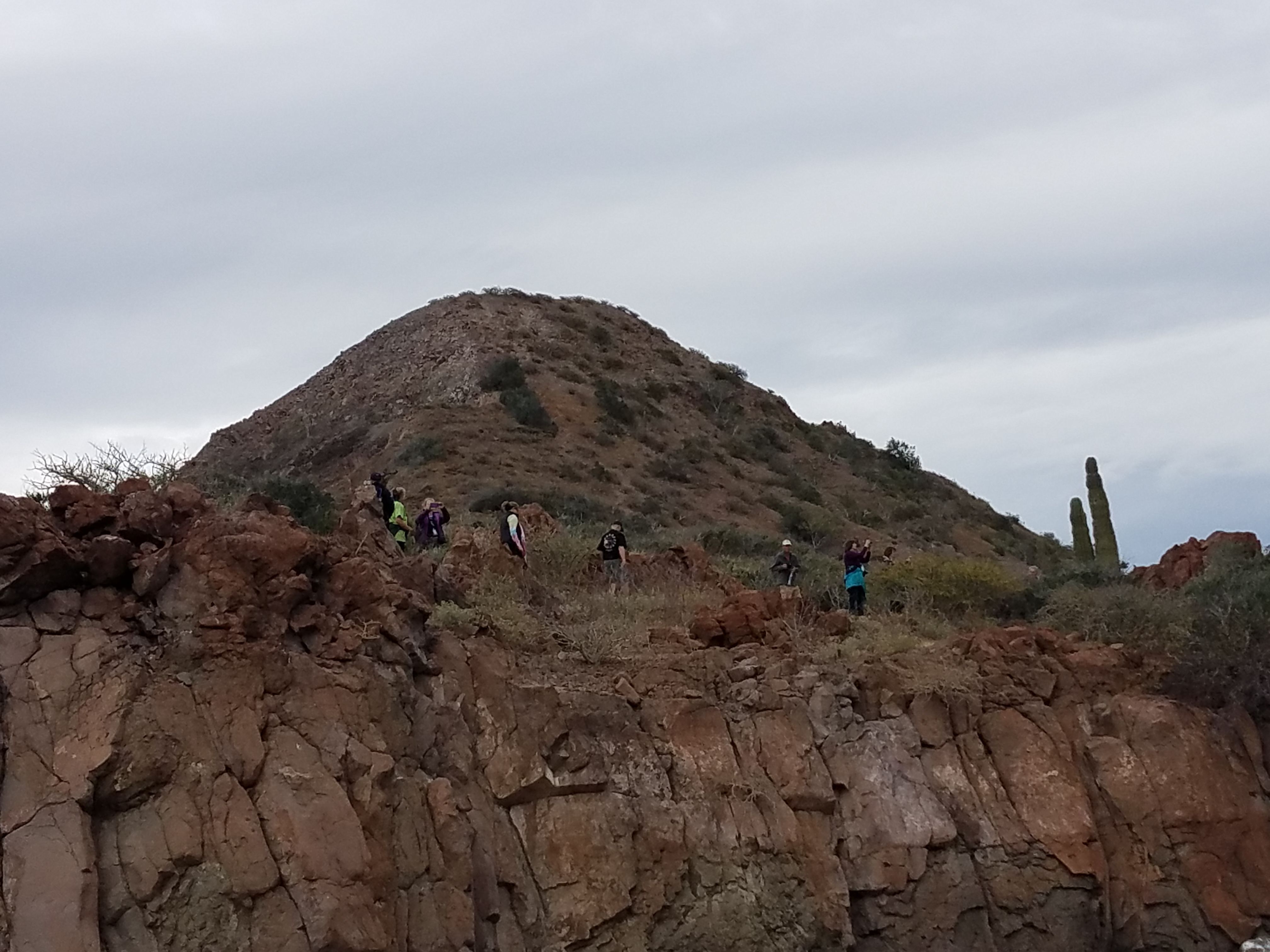 Walks in the desert can hold a plethora of surprises, and today was no exception. From clusters of scarlet Palo Adan flowers, the gems of the morning, to purple and white striped passion flowers. The numerous fruits on the vine attested to a series of flowers earlier this month. A diminutive bird, the verdin, was also interested in the Palo Adan flowers. The verdin’s short beak cannot reach the nectar, so this bird approaches the base of the flower, nips it open, and takes a nectar reward; pollination of the flower is thwarted in this thievery. The exoskeleton of a tarantula was found under the scrub, an indication of a spider that has molted and grown a bit bigger. At the end of the trail, we were all rewarded with a magnificent view of the Pacific Ocean. Good things come to those who venture outdoors.
