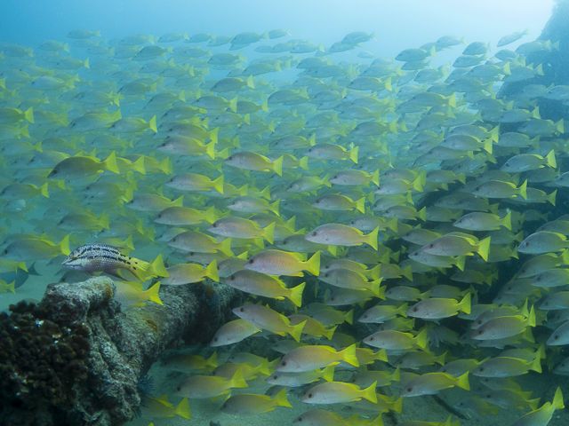 Baja California is truly proving itself to be one of the most magical places on the planet. Waking up this morning, National Geographic Venture was sailing north in the Pacific Ocean, offshore of the Baja peninsula. Having entered the open ocean for the first time in this trip, we were hoping to see some animals that are not always found in the Sea of Cortez. We were not disappointed! Bottlenose dolphins joined the ship as the sun rose, surfing along in the pressure wave created by the ship’s bulbous bow. During breakfast, rafts of about 100 California sea lions raced over to play in our wake, and two humpback whales even swam and twirled off of our stern, giving guests a show through the panoramic windows in the dining room. Throughout the morning there were sightings of many new seabirds [pink-footed and black-vented shearwaters, western and California gulls] and cetaceans [Pacific white-sided dolphins] as we made our way towards the entrance to Magdalena Bay.