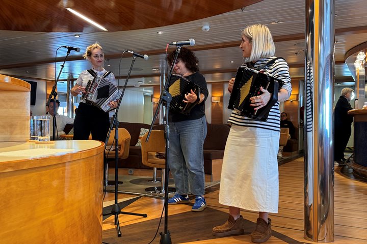 Lunch was at the Parador de Santiago de Compostela, a former hospital founded by King Ferdinand and Queen Isabella in 1486, now a luxury hotel promoting local cuisine. Before our meal, we enjoyed cocktails, tapas, and a surprise concert from a local traditional music troupe.