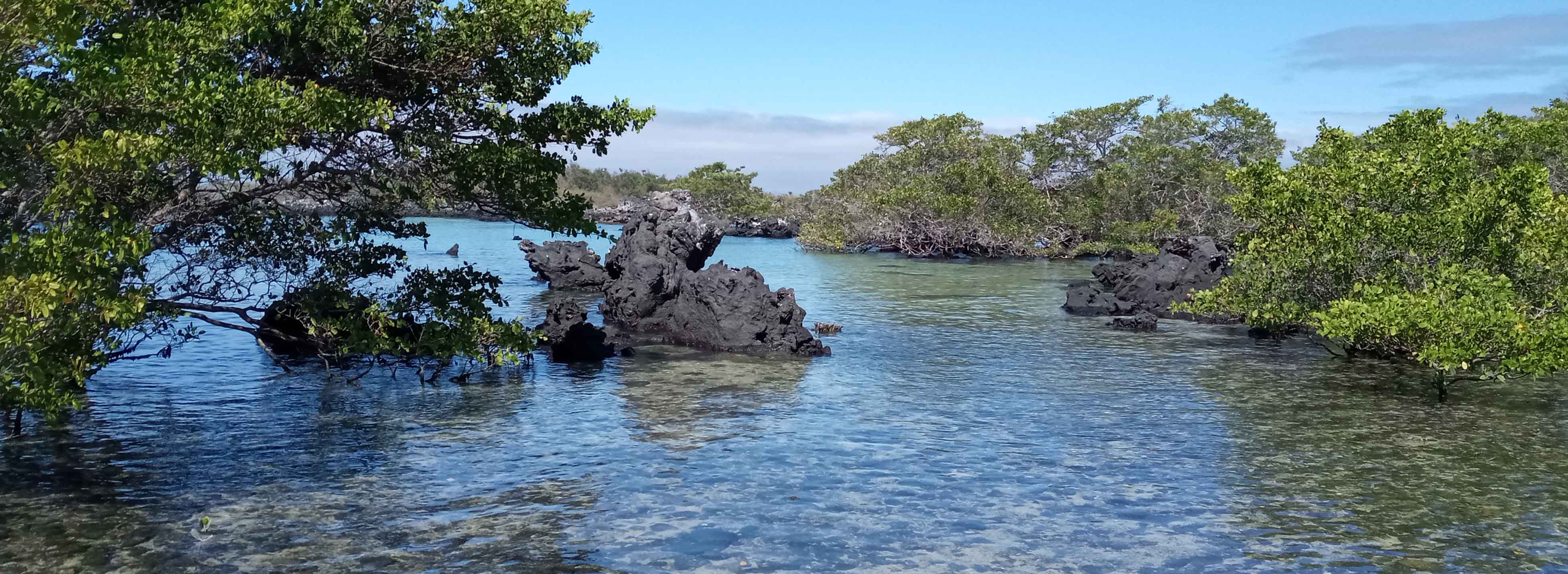 A long, mostly smooth overnight navigation took us back to the central islands of the Galapagos archipelago. We awoke to find gray skies and a chilly breeze; these were pleasant conditions for the kayaking and hiking we had scheduled for this morning. All those who went to the shore enjoyed walking the long calm beach, and watching blue-footed boobies diving offshore, or exploring the mangrove and palo santo forests where finches and warblers were feeding among the branches. The kayakers paddled along the dramatic cliffs and inlets to Buccaneers Cove and appreciated the brisk following wind that helped push them along. Everyone worked up an appetite for our late breakfast!