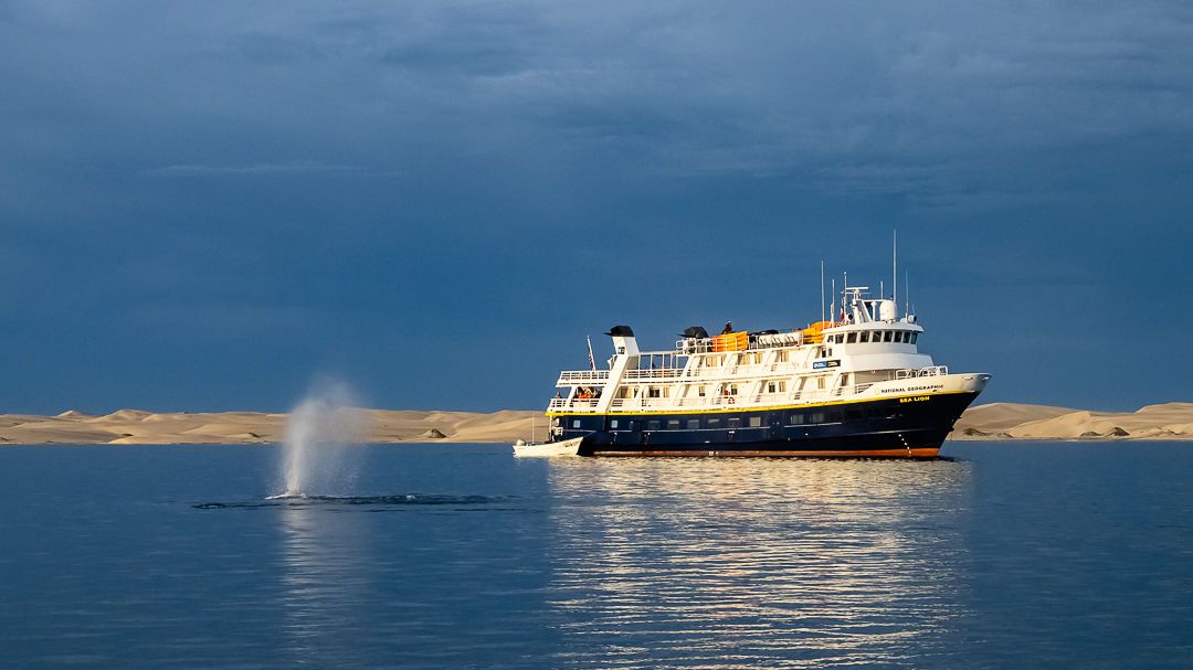 What perfect weather for our last full day on the ship! We cruised north through the Sea of Cortez with great anticipation. We were on the lookout for cetaceans and were especially keen to find the largest animal that’s ever lived on the planet, the blue whale. Our perseverance paid off three-fold! We had three blue whale sightings; one in particular was very close to our vessel. Close enough to hear its powerful breath (which shot 30 feet into the air) coming from this majestic creature. The whale was so close that without the aid of binoculars, we saw the most powerful muscle on the planet, the tremendous caudal peduncle. It lifted up the whales tremendous fluke and propelled this beautiful creature for a deeper feeding dive. What a treat to see this animal up close!